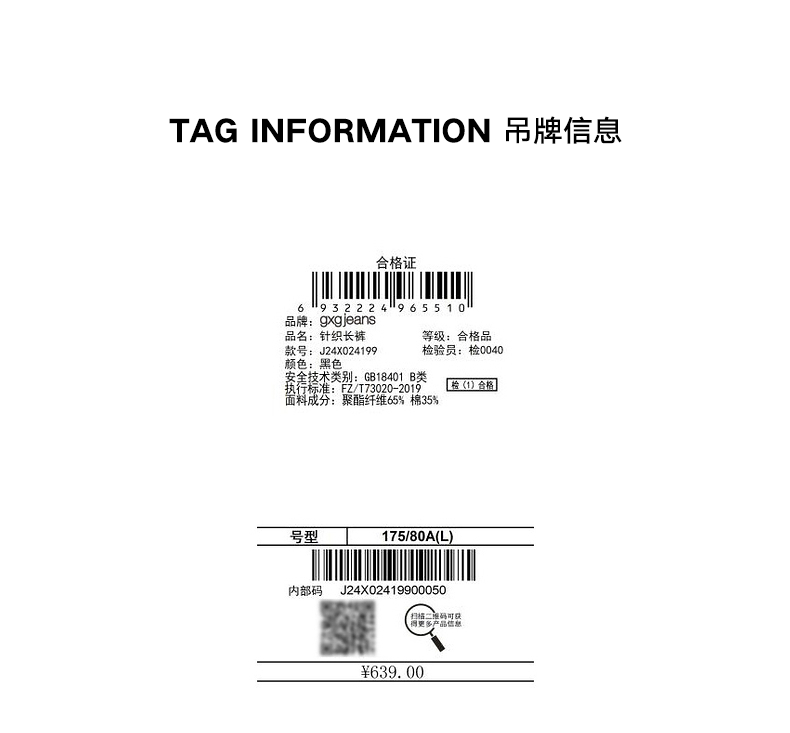 gxg.jeans男装冬季热卖针织长裤J24X024199