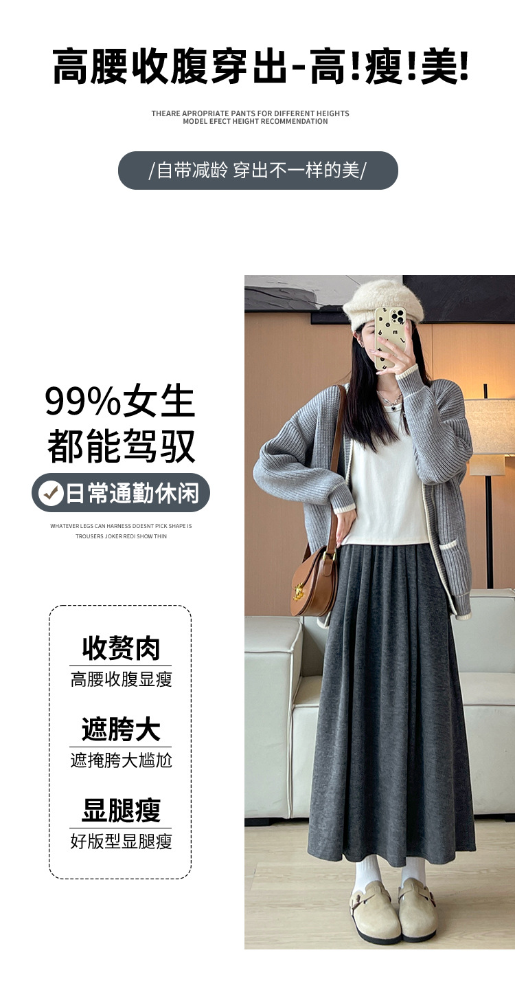 「秋冬新款!云朵糯米半身裙」山本糯米裙女秋冬款高腰显瘦a字半身裙中长款针织大摆裙裙子