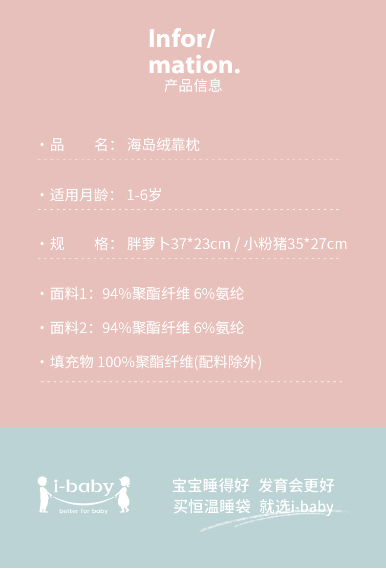 i-babyNF小粉猪/胖萝卜 海岛绒靠枕