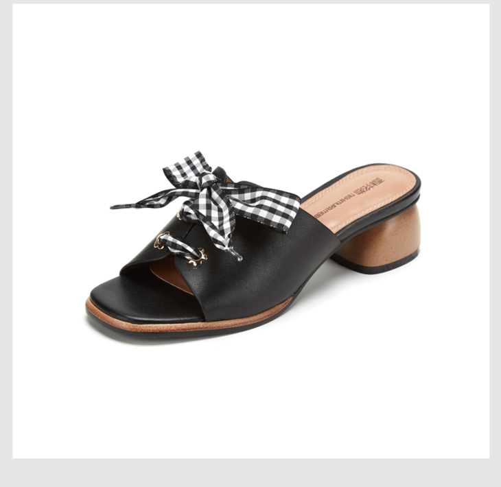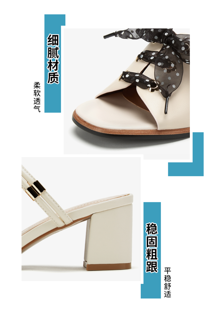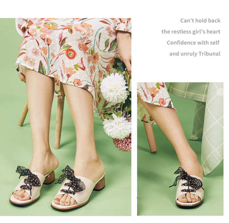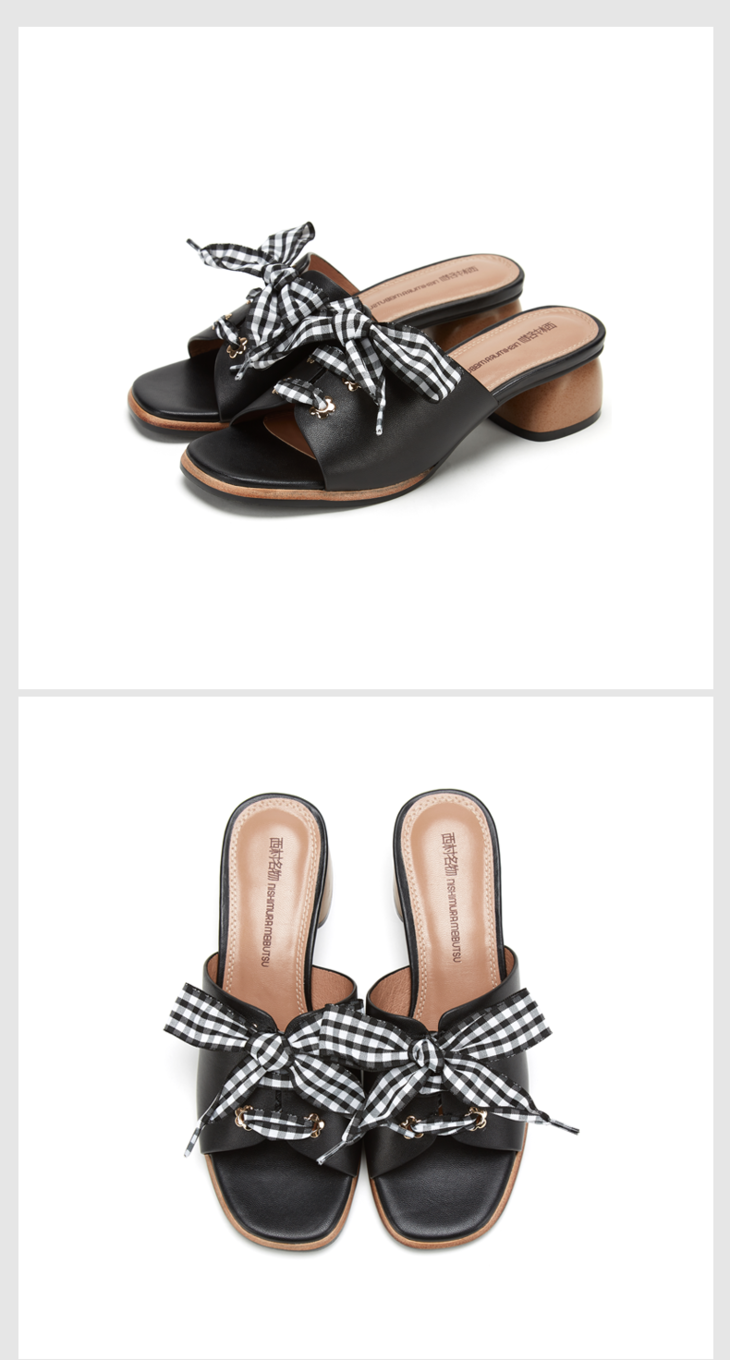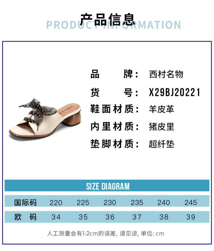 西村名物绑带木纹中跟波点时尚通勤半拖X29BJ20221