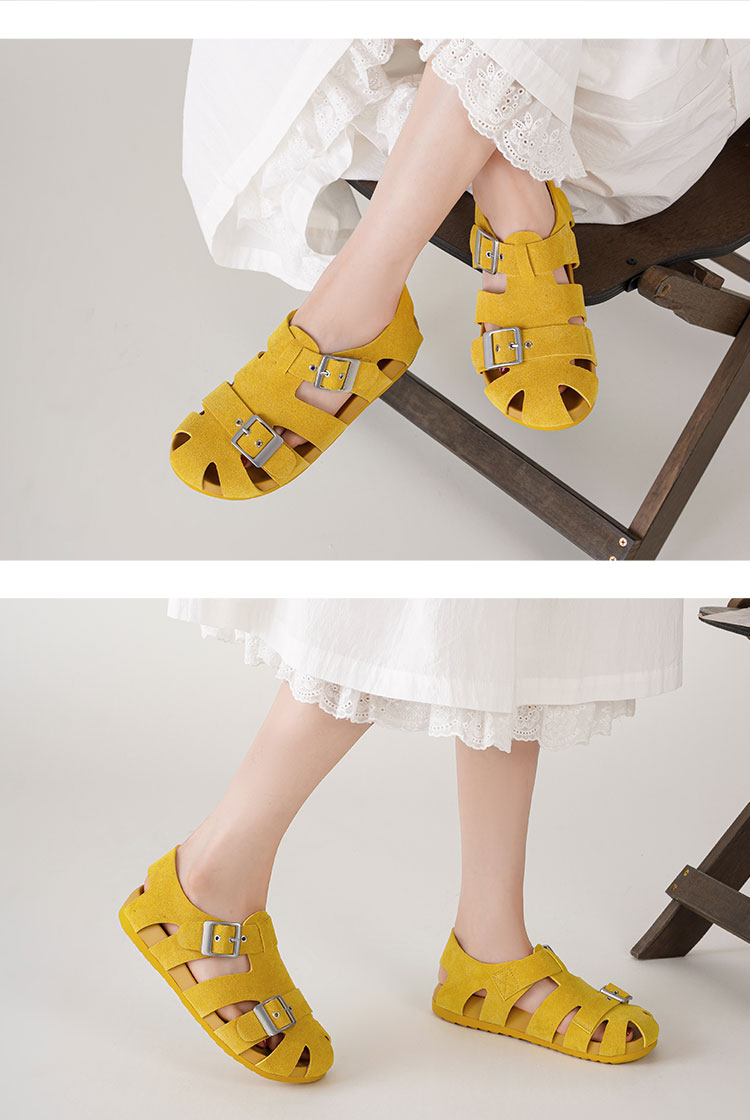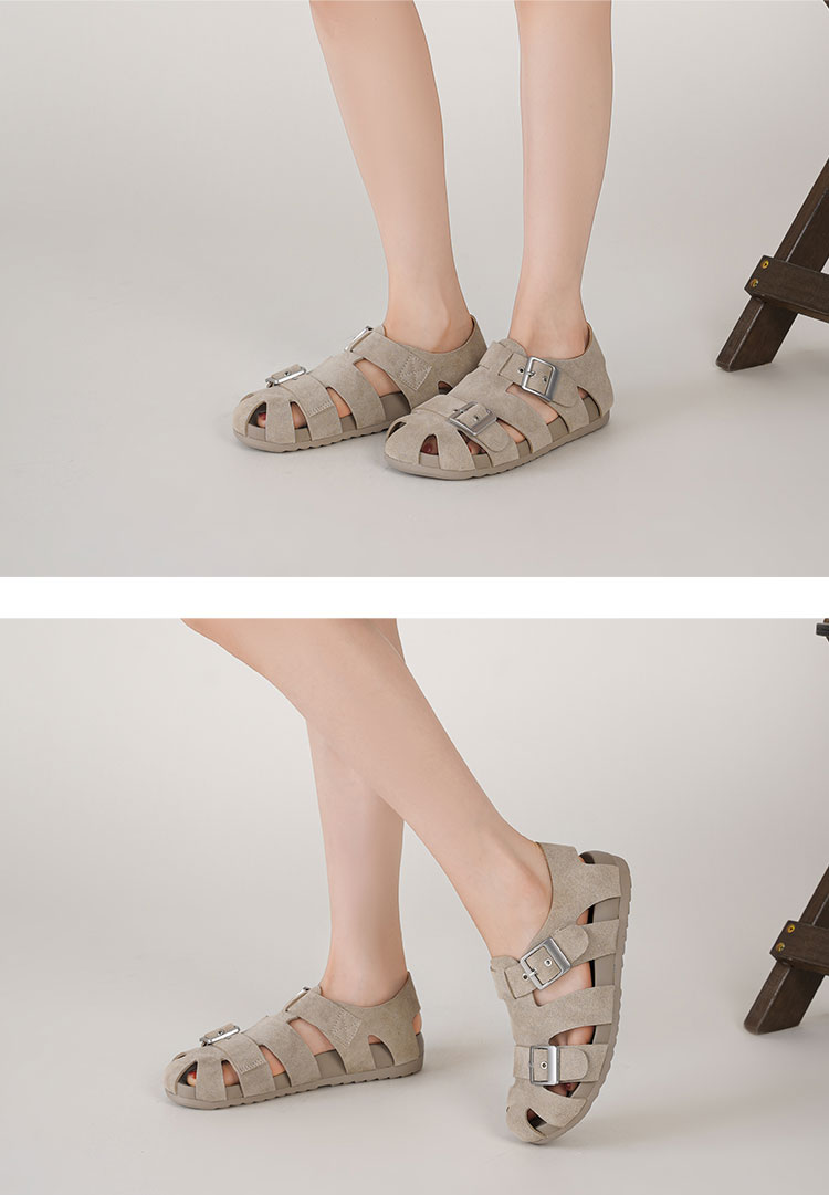 【夏季新款】西村名物2025年夏季新款舒适平底包脚露趾经典罗马凉鞋T25BG21031