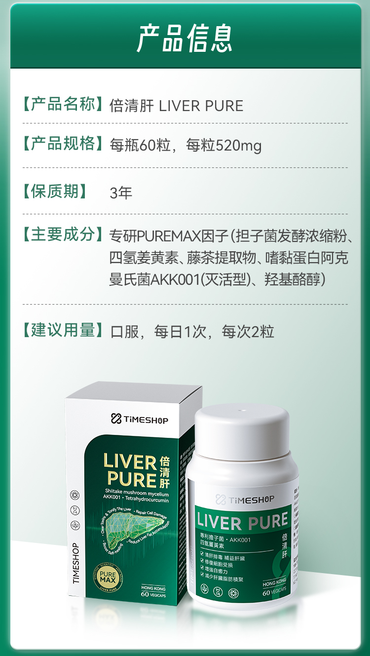 【YF专属】【香港直邮 时效7-15天】【品牌大使朱茵】TimeShop 倍清肝 1瓶/3瓶(60粒/瓶)清肝排毒/补益肝脏/减轻肝脏负担