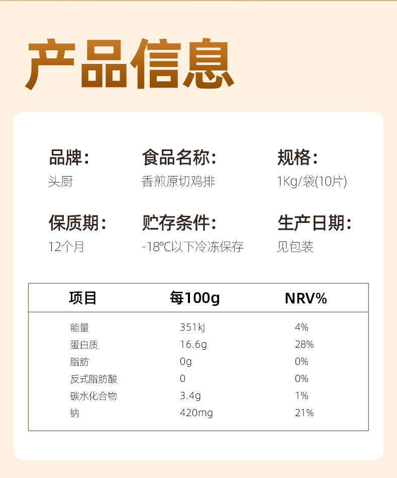 头厨香煎原切鸡排真原切(1kg/包10片)生产日期:11月10日
