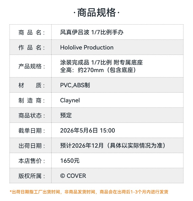 【GSC预售定金】1/7标准比例 风真伊吕波 Hololive Production