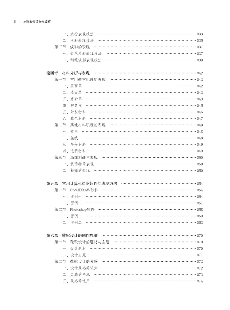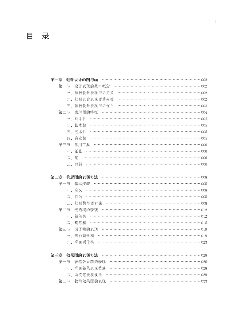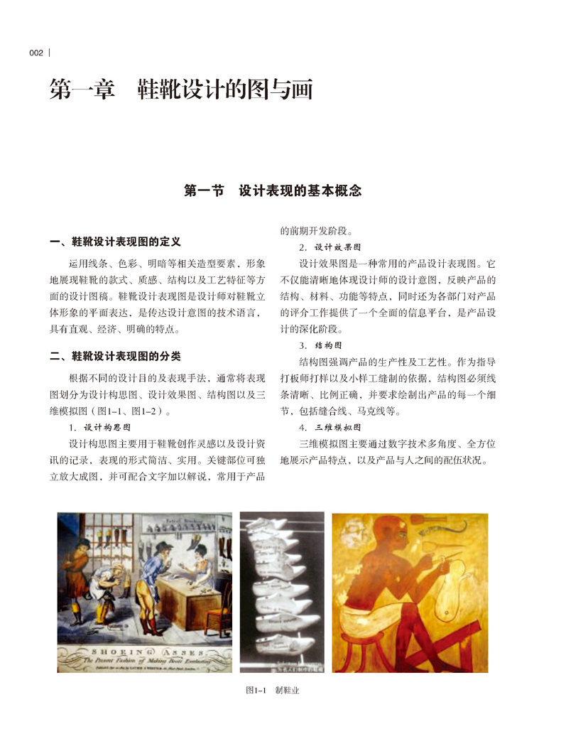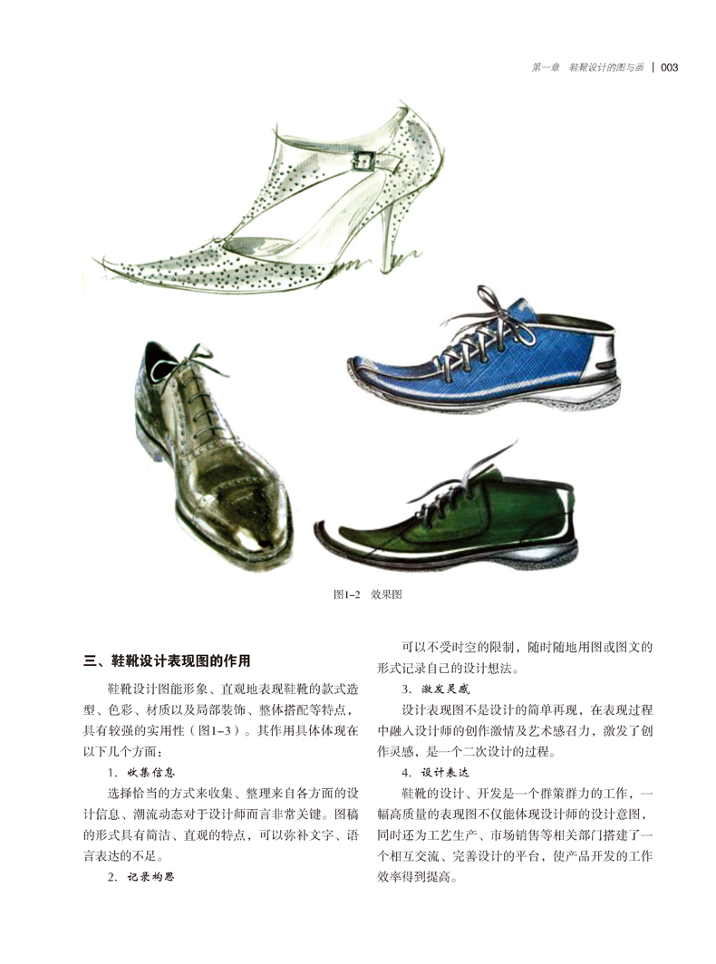 三、鞋靴设计表现图的作用………………………………………………………… 003