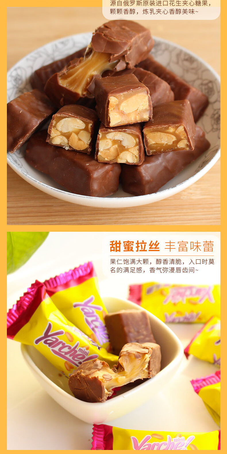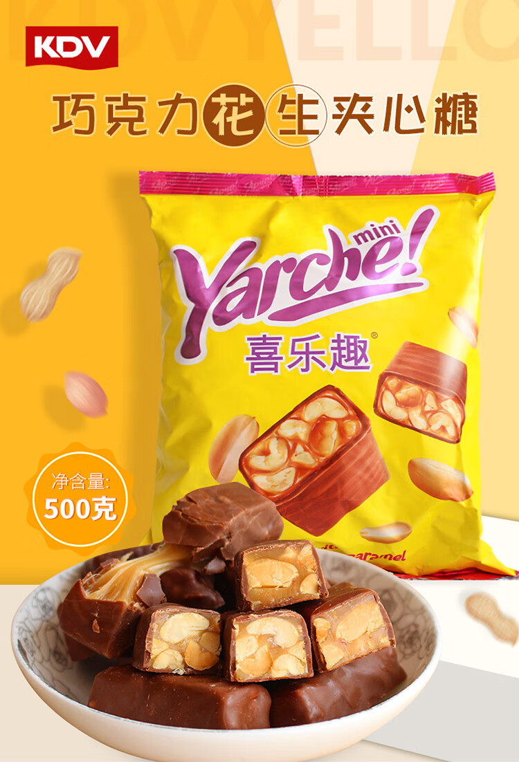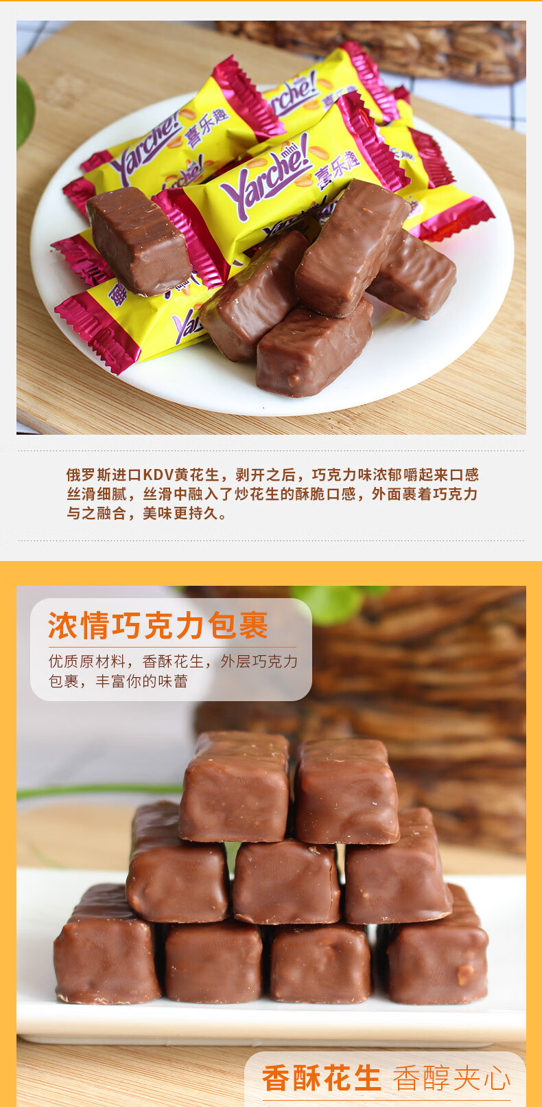 KDV俄罗斯原装进口喜乐趣巧克力花生夹心糖喜糖年货节糖果零食500g