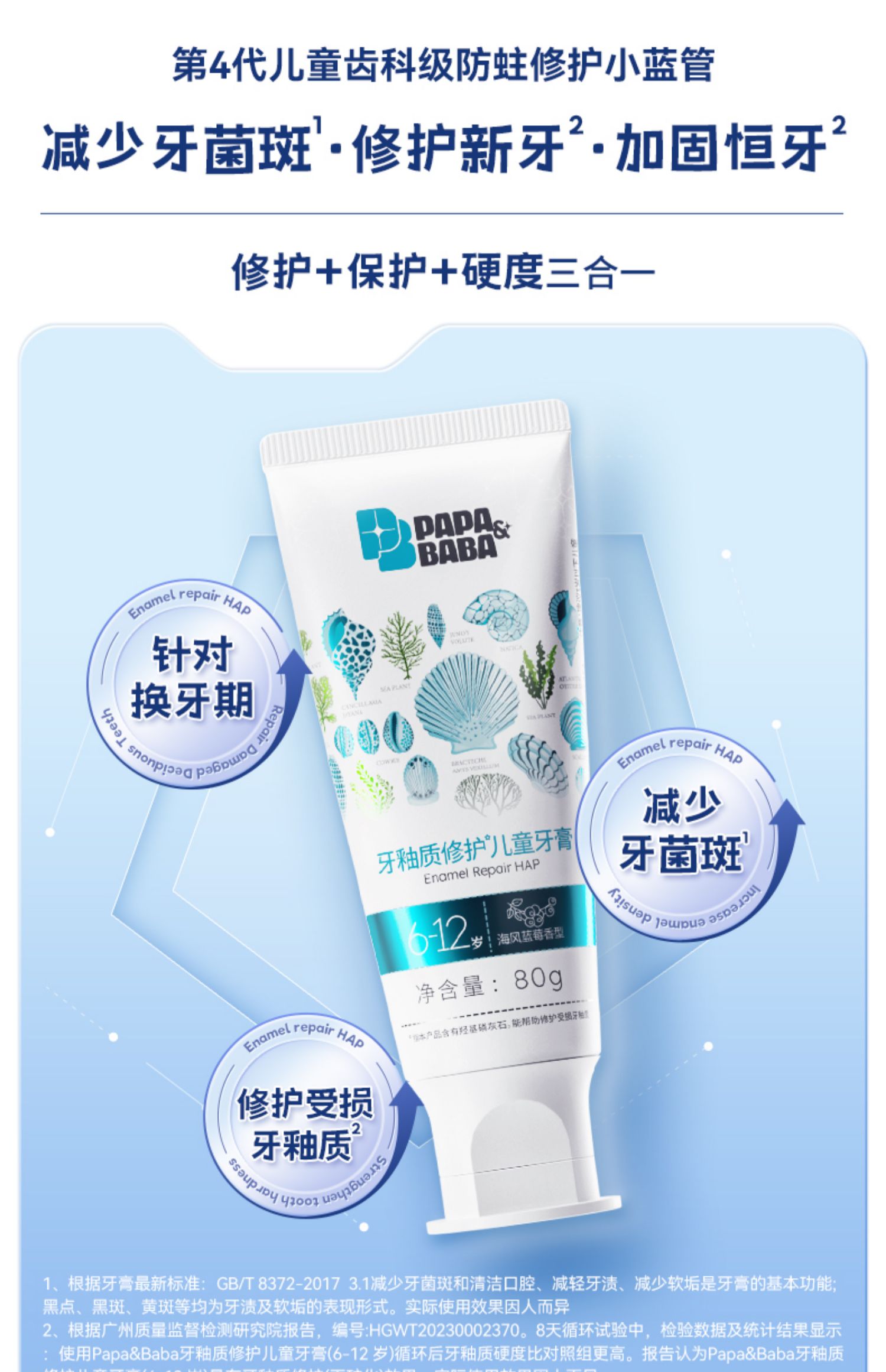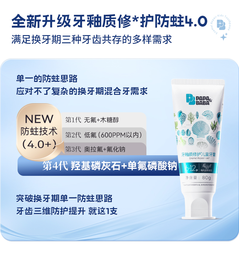 Papa&Baba牙釉质修护儿童牙膏(6-12岁)80g