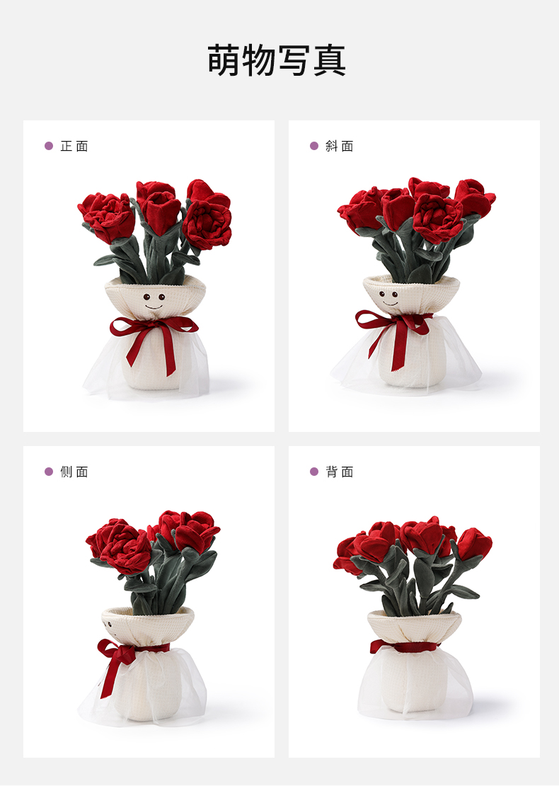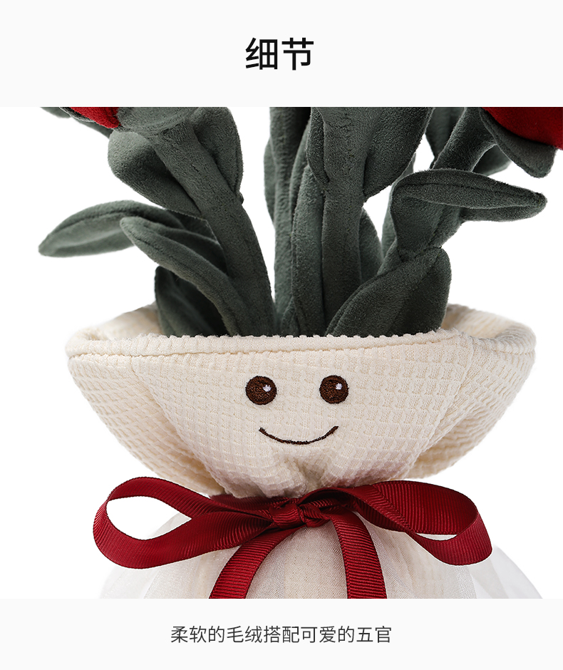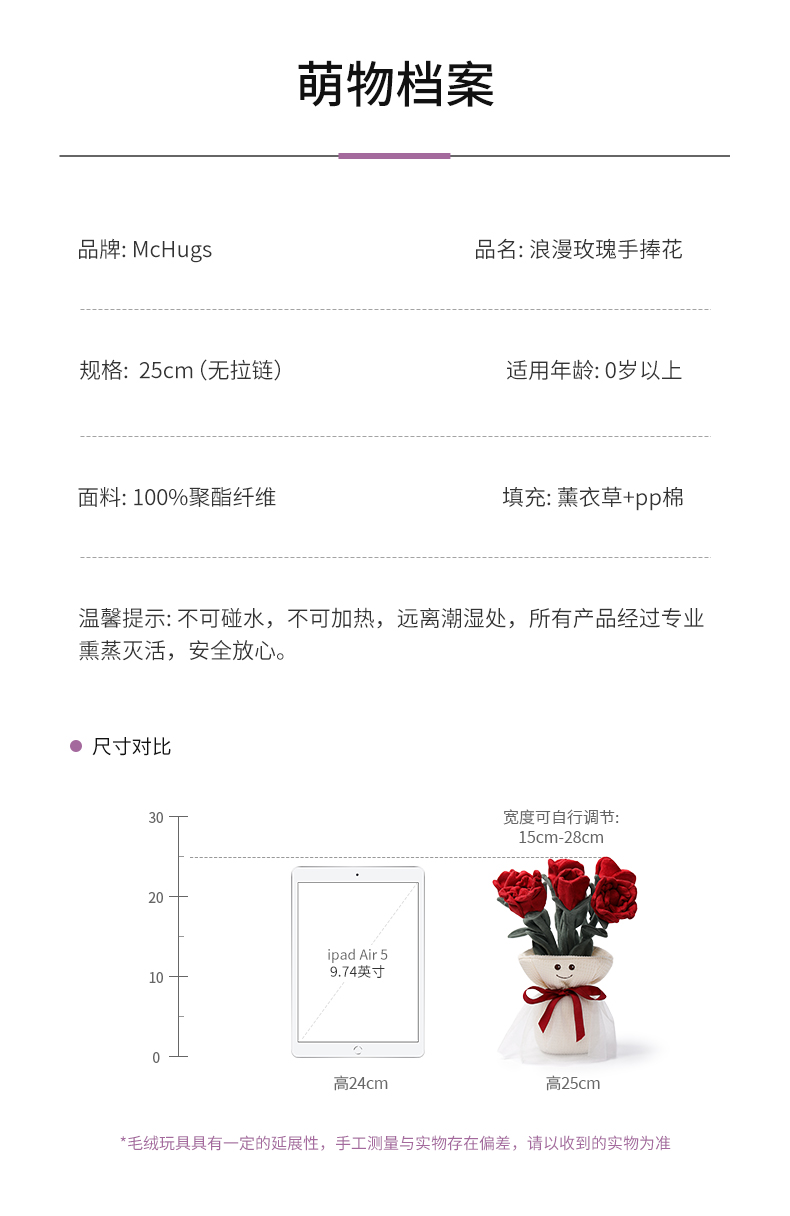 McHugs 浪漫玫瑰手捧花 玫瑰花手捧花植物玩偶娃娃毛绒玩具生日礼物情人情侣礼物