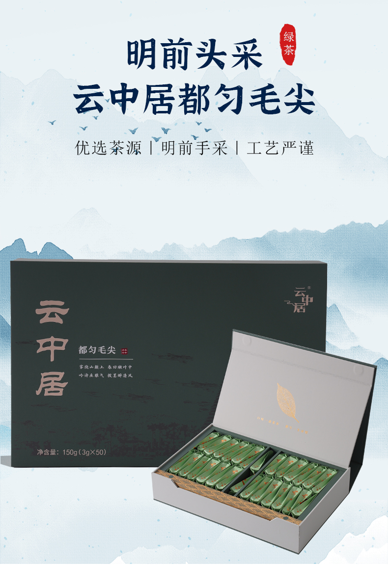 云中居知晓系列特级礼盒装都匀毛尖150g(3g×50)