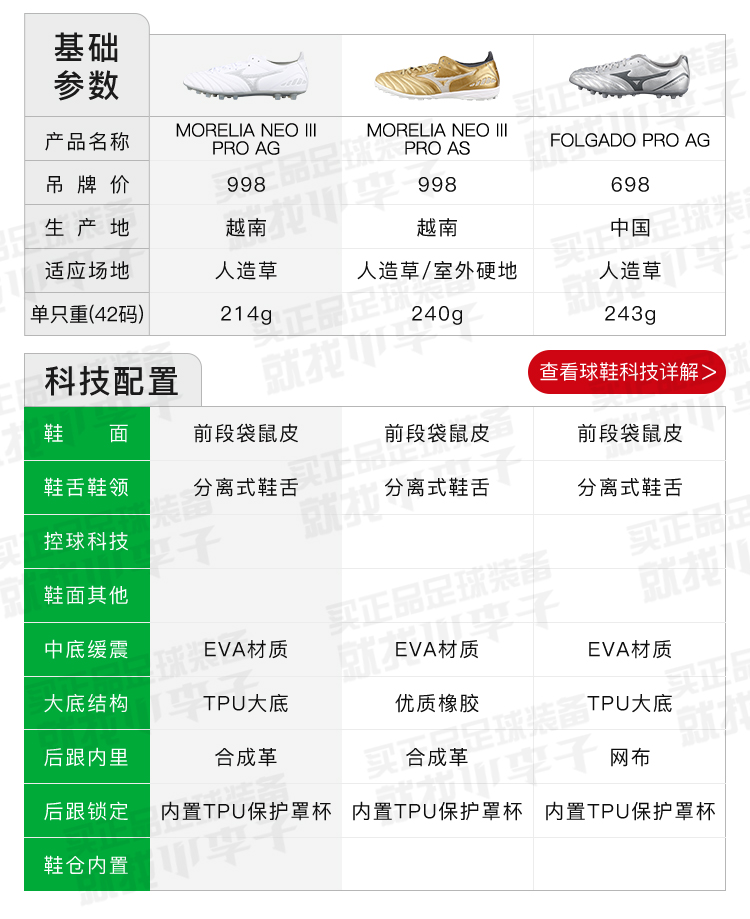 Mizuno/美津浓莫雷拉MORELIA NEO 3 PRO次顶AG短钉袋鼠皮成人足球鞋男P1GA238404