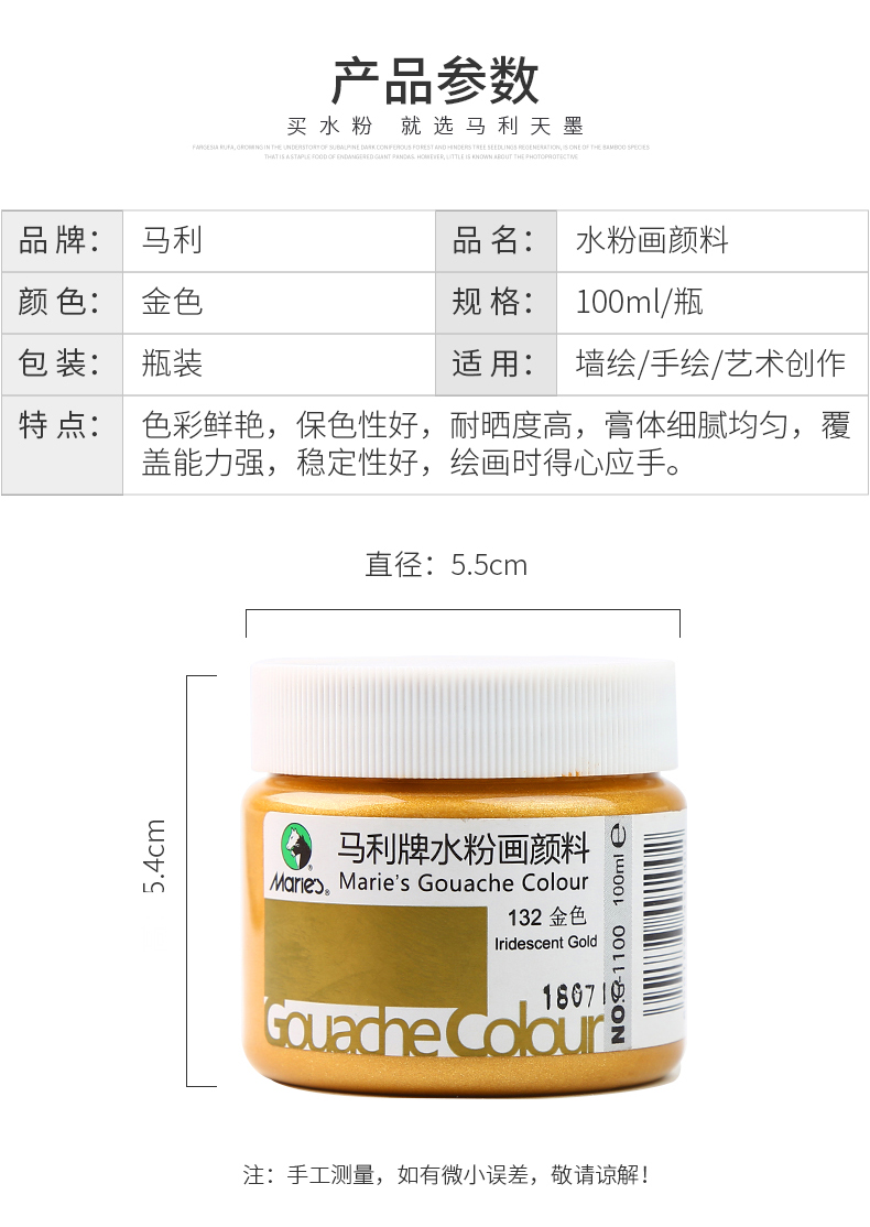 马利水粉颜料1100金色文具绘画美术工具