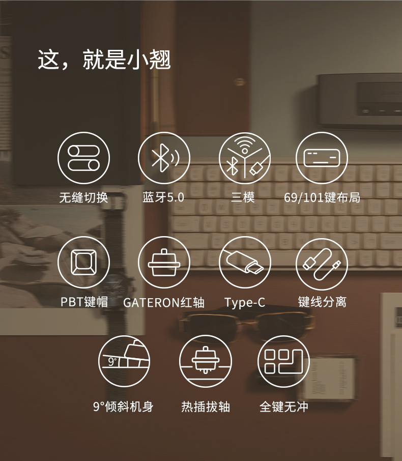 Lofree洛斐小翘机械键盘无线蓝牙ipad女生可爱红轴笔记本电脑平板