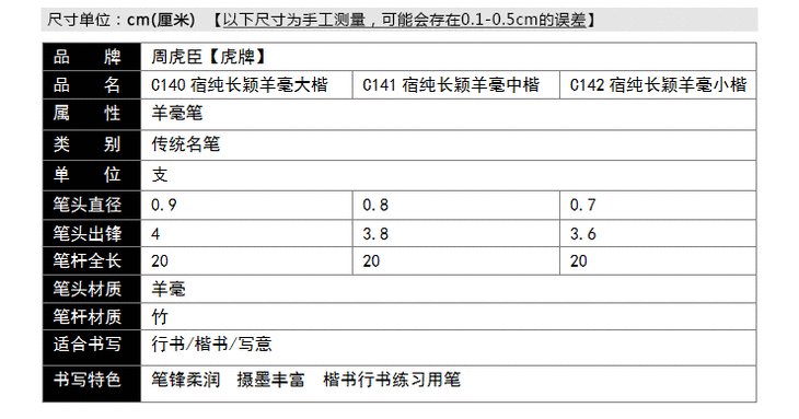 周虎臣宿纯长颖羊毫毛笔成人学生书法