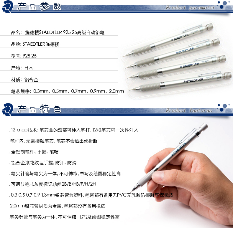 施德楼高级自动铅笔办公学生考试学习用品绘画