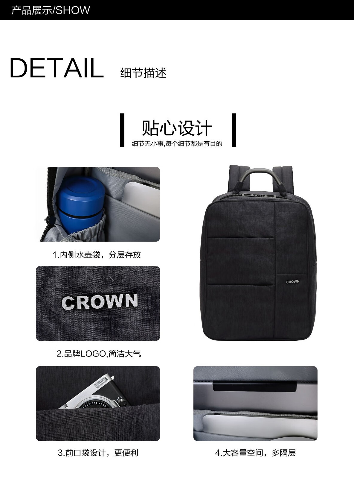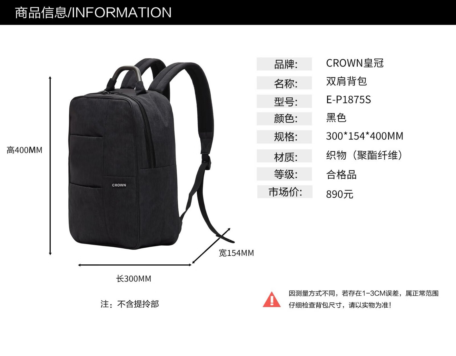 CROWN皇冠双肩背包E-P1875S/16” 黑色