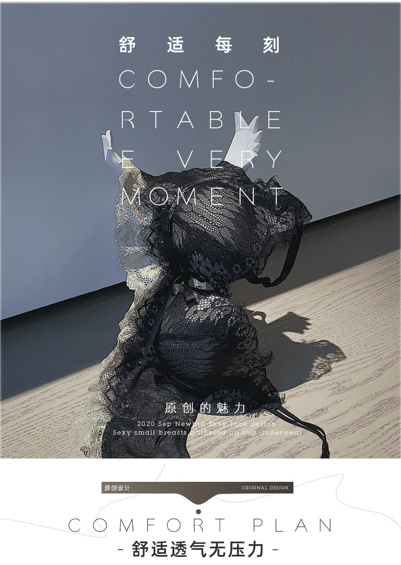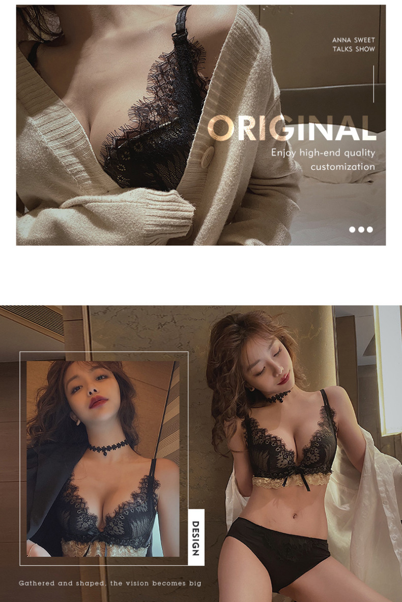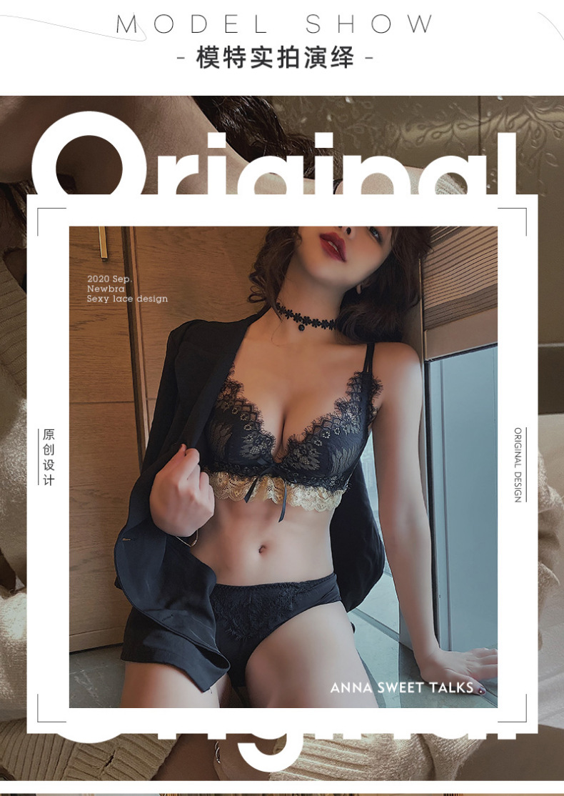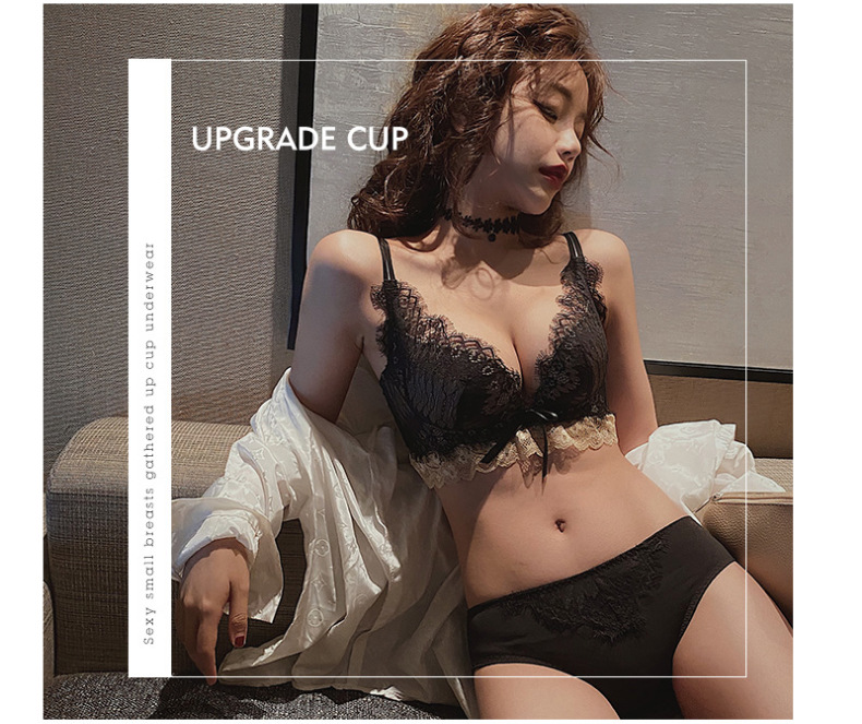性感睫毛蕾丝内衣女 美背内衣内裤一套装 小胸聚拢性感蕾丝 调整型2024新款文胸罩套装