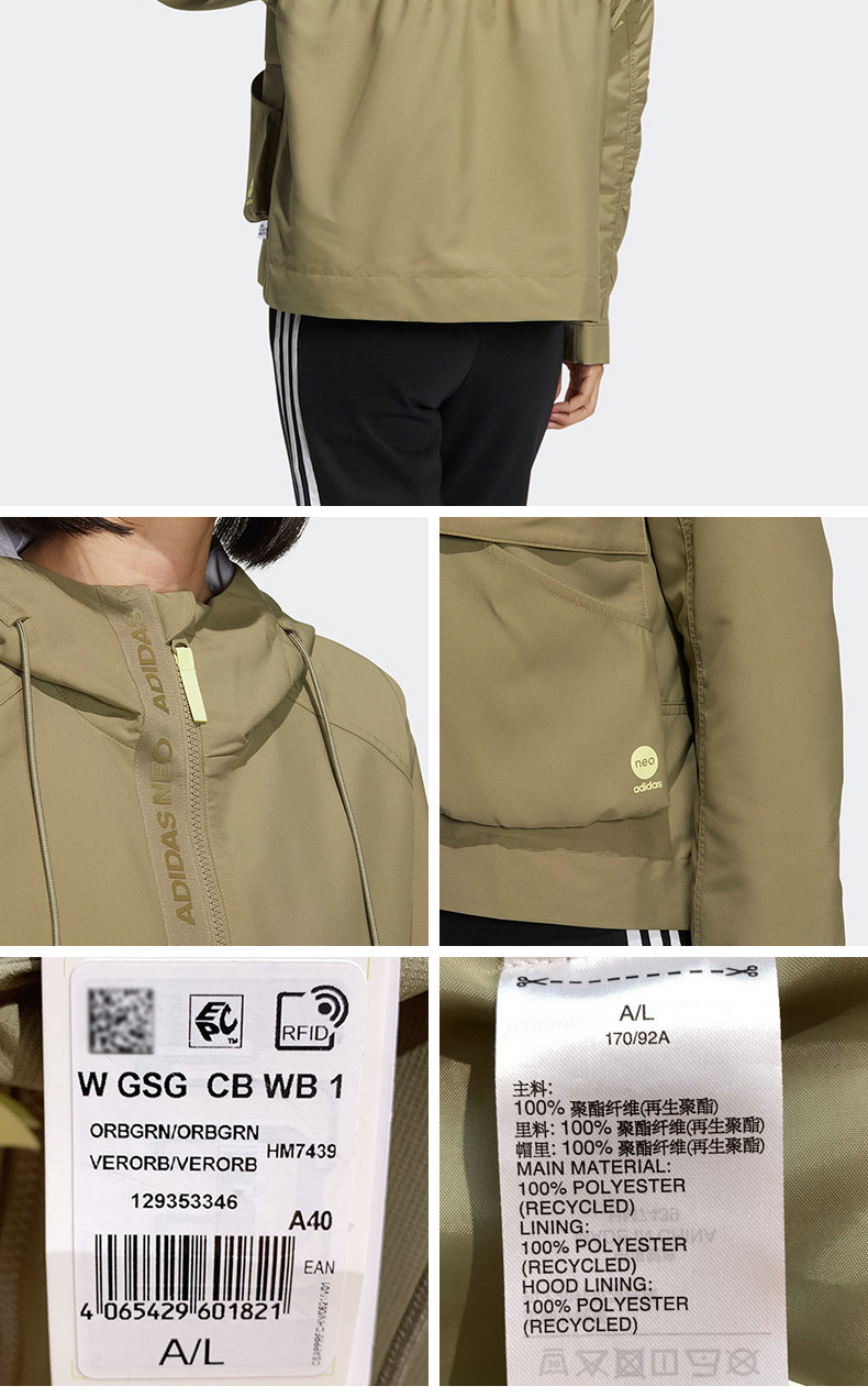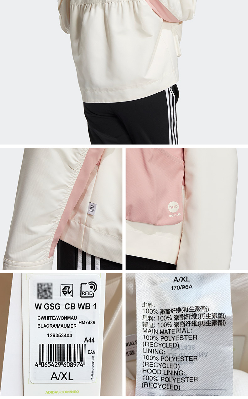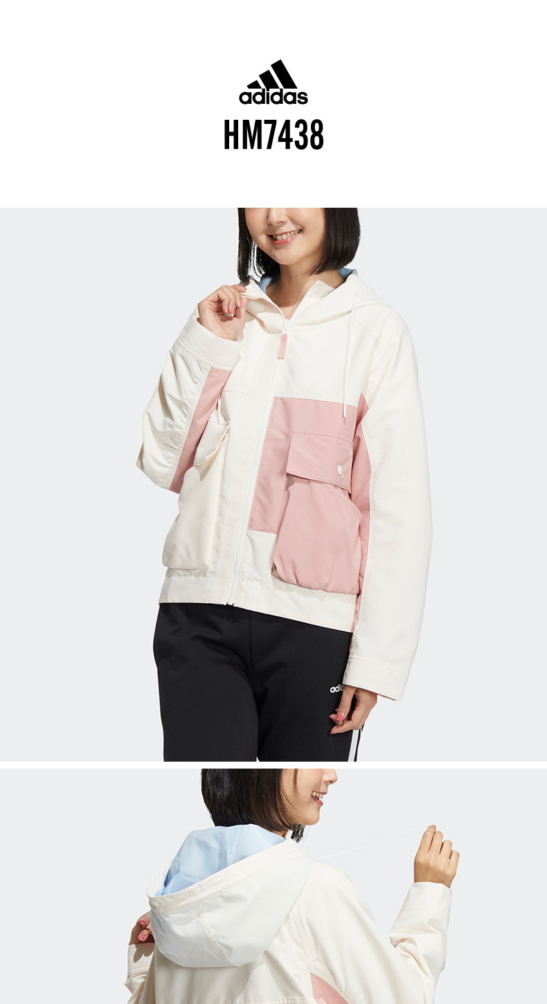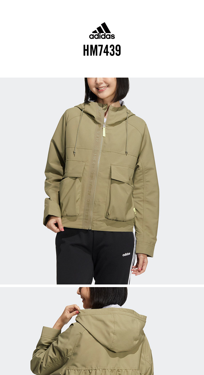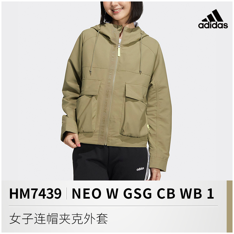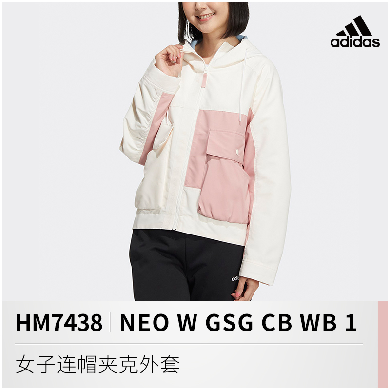阿迪达斯NEO外套女2022年春季新款运动休闲连帽夹克上衣HM7438