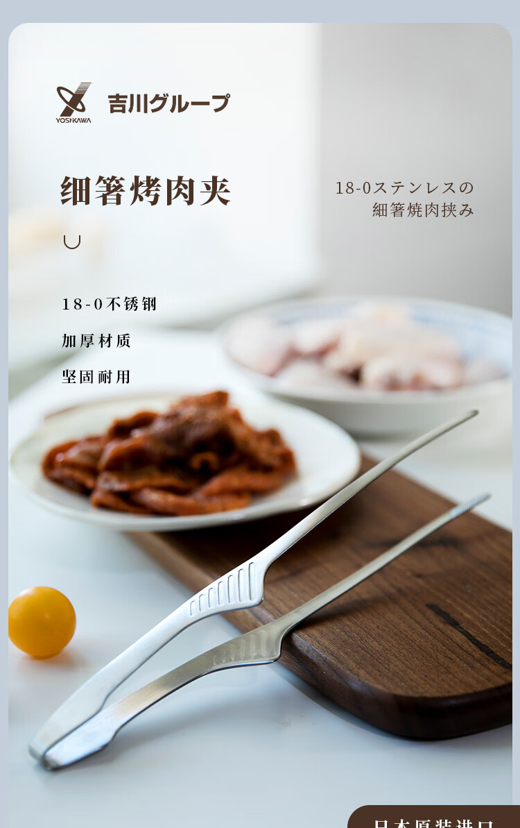 吉川YOSHIKAWA日本进口不锈钢食品夹 烤肉夹烧烤夹