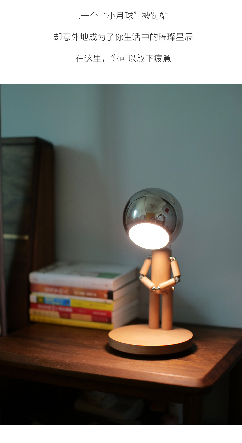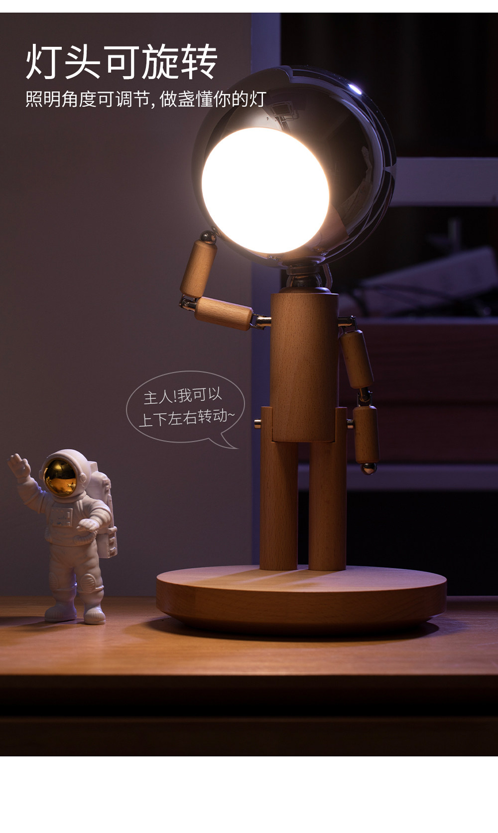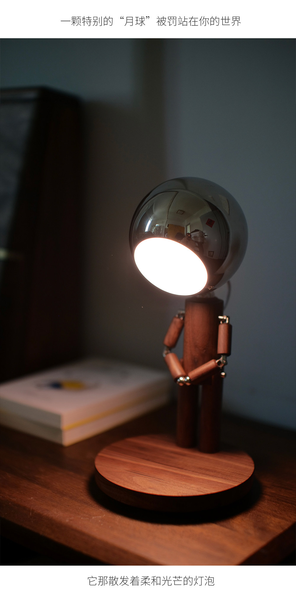 DY-PTLIFE月球罚站人台灯 黑胡桃木+三色变光+手机无线充 大满配版