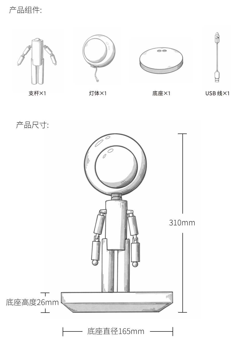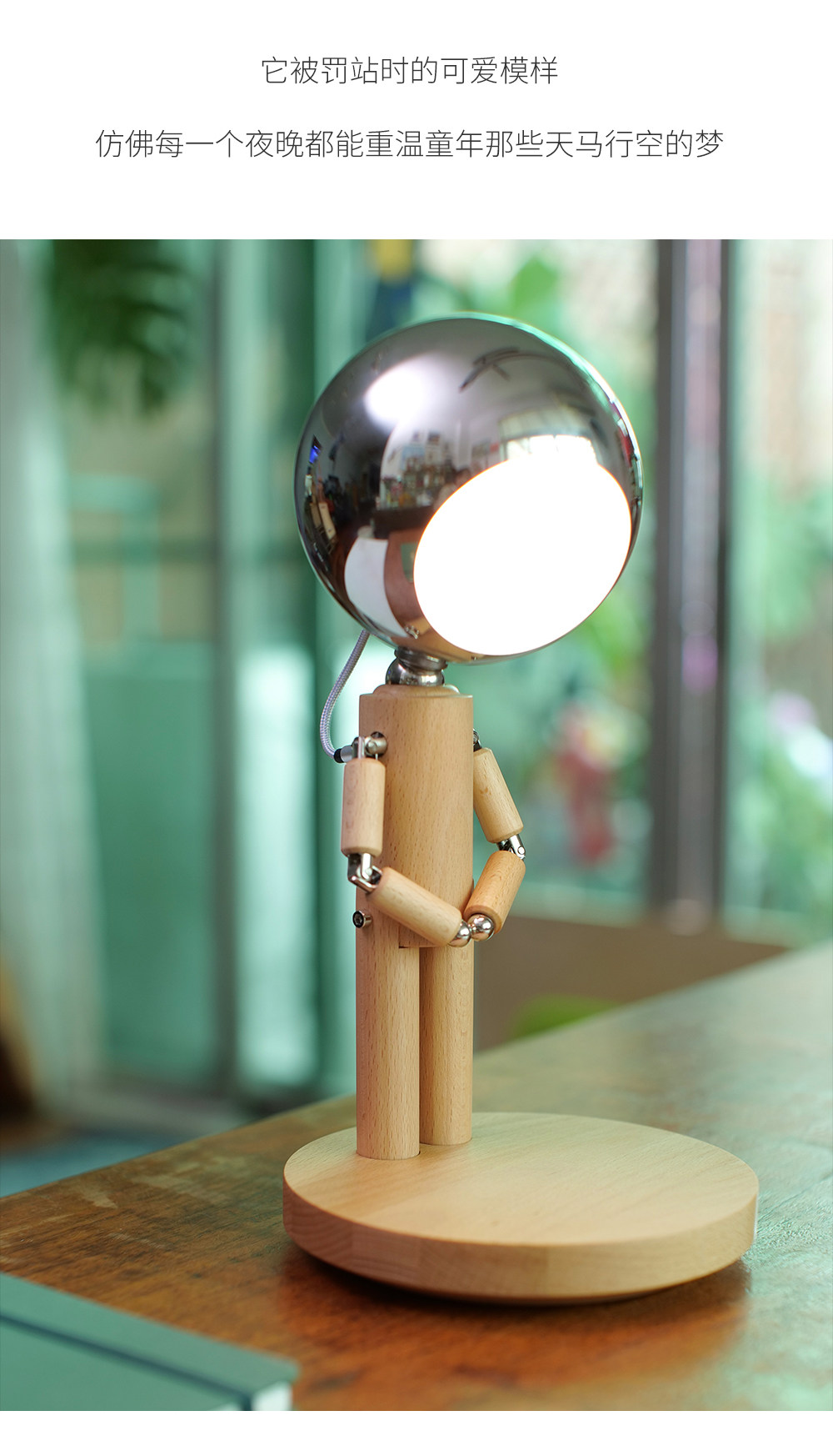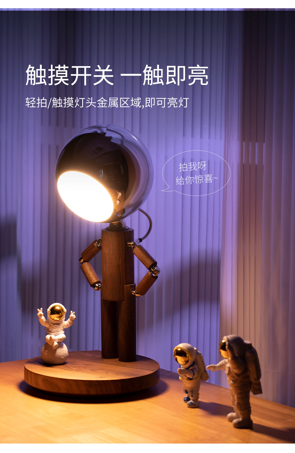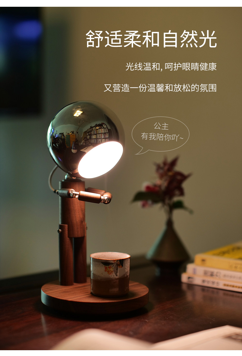 DY-PTLIFE月球罚站人台灯 黑胡桃木+三色变光+手机无线充 大满配版