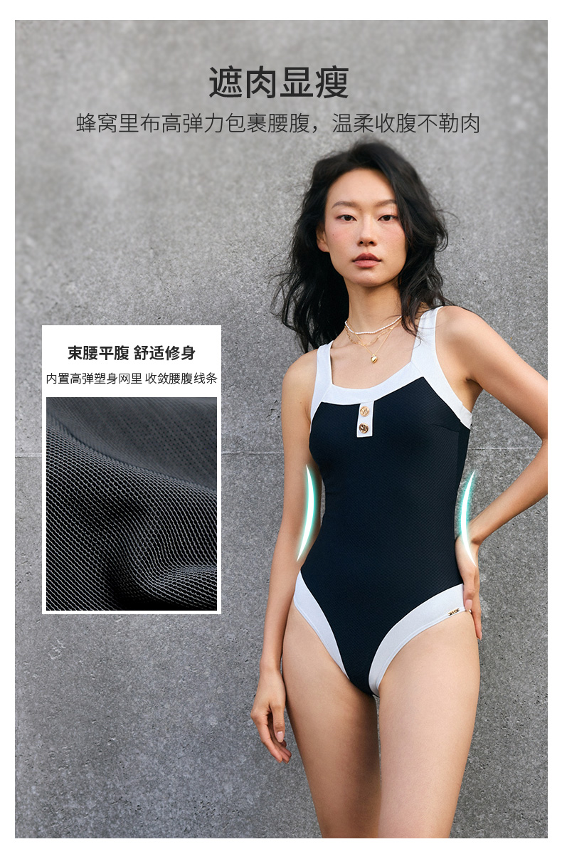 sisia2025新款泳衣女士高级感显瘦遮肚绝美性感复古温泉连体泳衣SWS24-21A