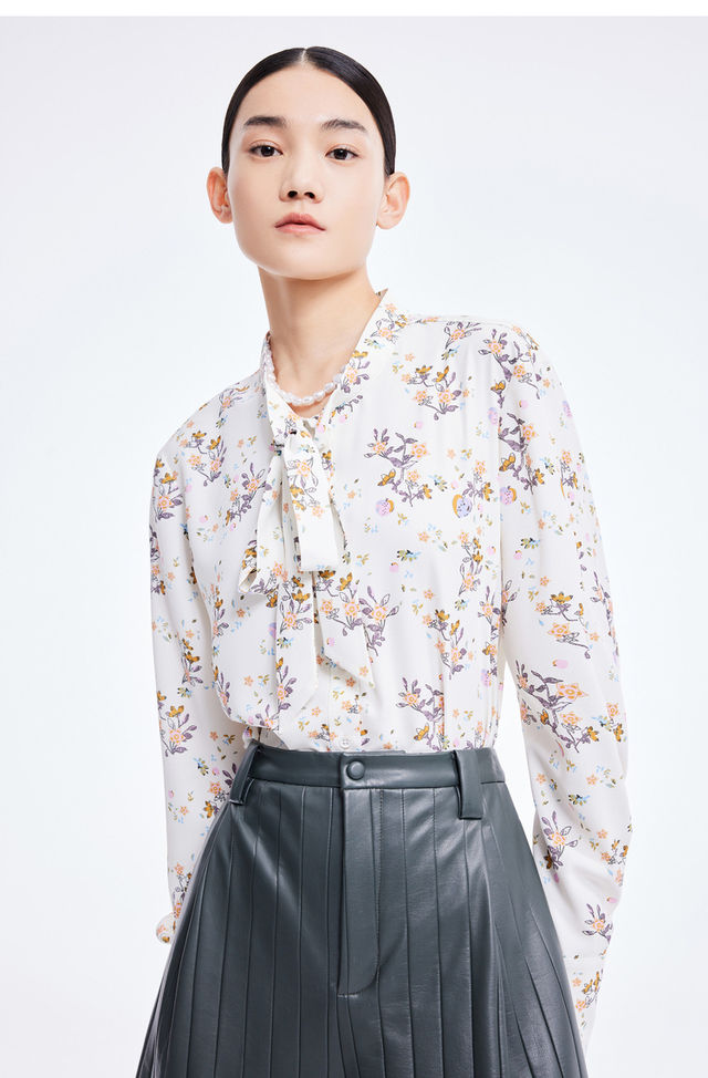 LILY2022夏季新款女装设计感复古浪漫印花长袖衬衫122210C4128