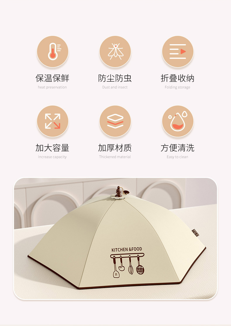 【精选】冬季防尘防虫加厚保温可折叠菜罩 餐桌罩坚固耐用轻松收纳不占地