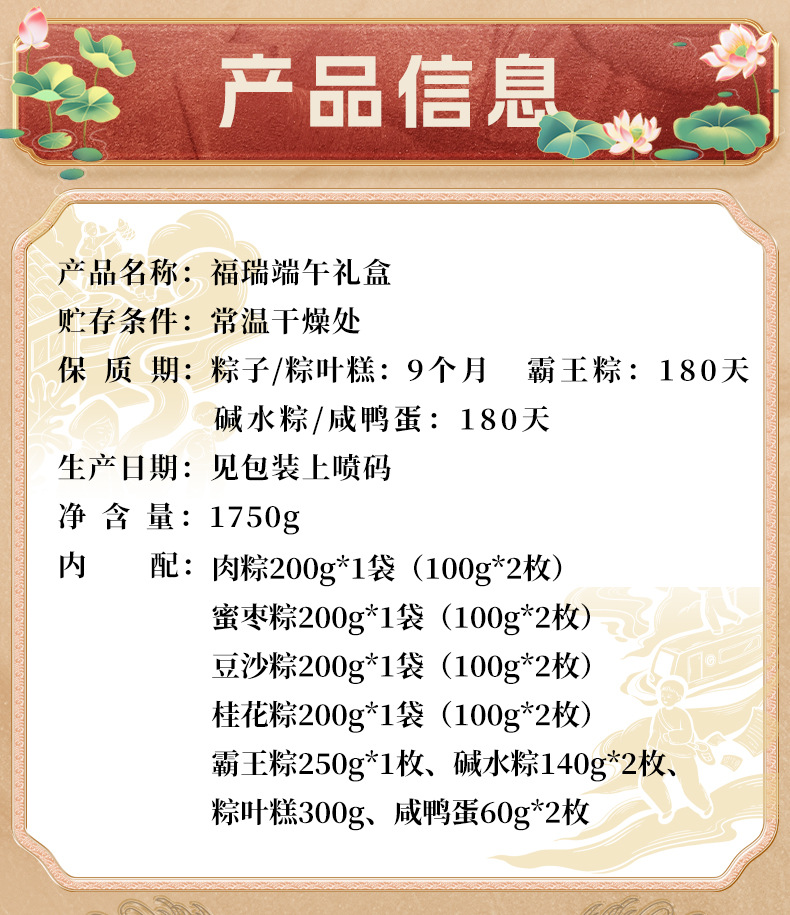 刻凡端午福瑞1750g礼盒装 送礼五花大肉零食真空装粽叶糕企业团购