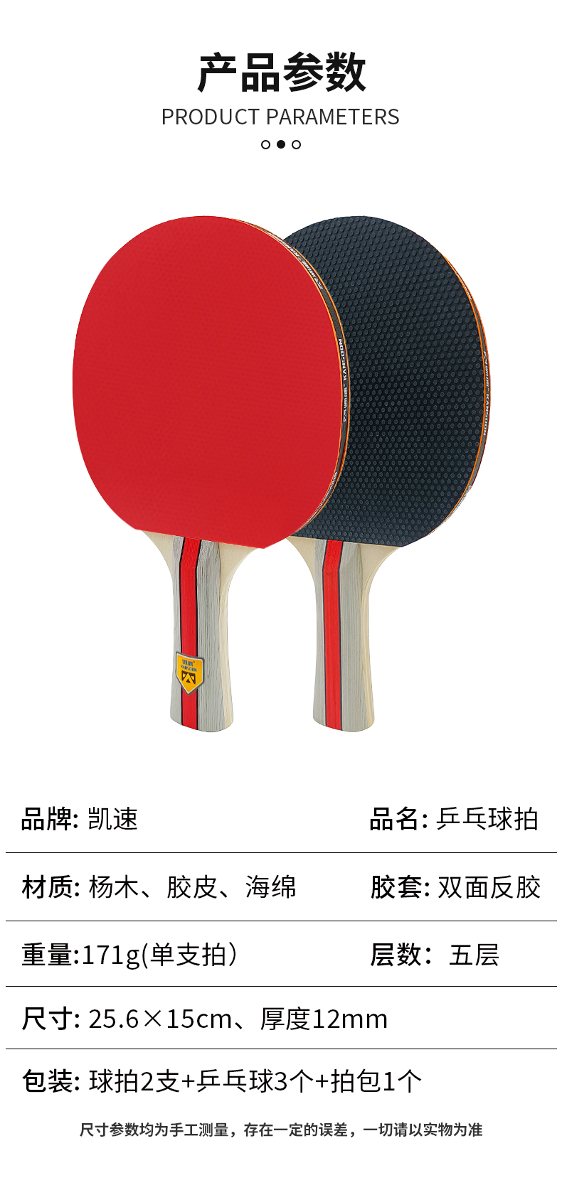 凯速乒乓球拍(赠送乒乓球3个+拍包1个 )PP01黑红色【XPTX】