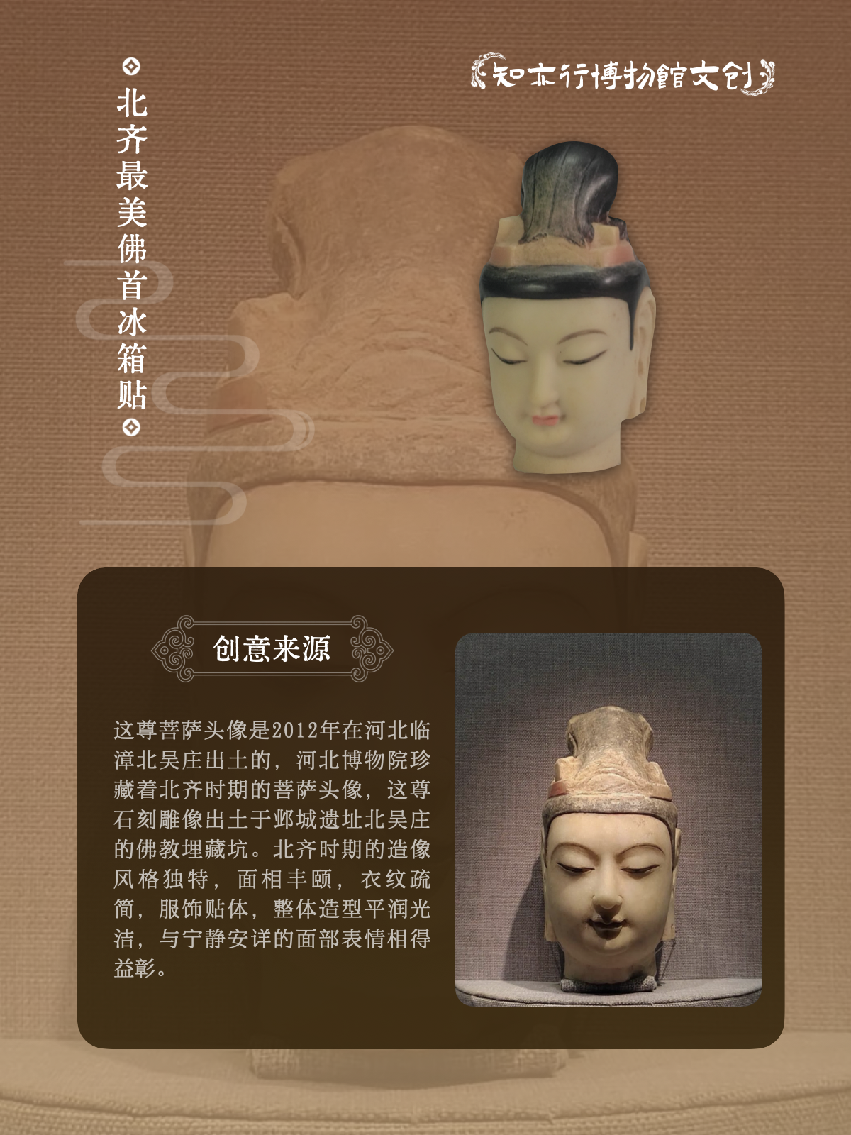 北齐菩萨头像彩塑立体冰箱贴彩绘佛头磁吸小摆件中式创意文创礼品