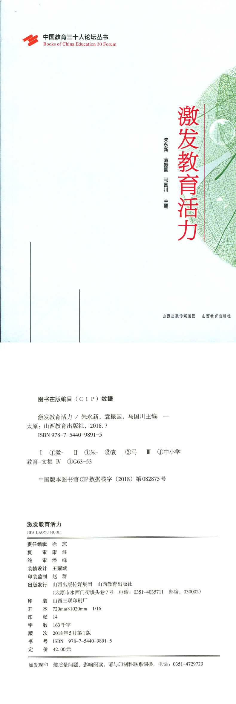 正版 包邮 激发教育活力 中国教育三十人论坛丛书 朱永新 袁振国 马国川