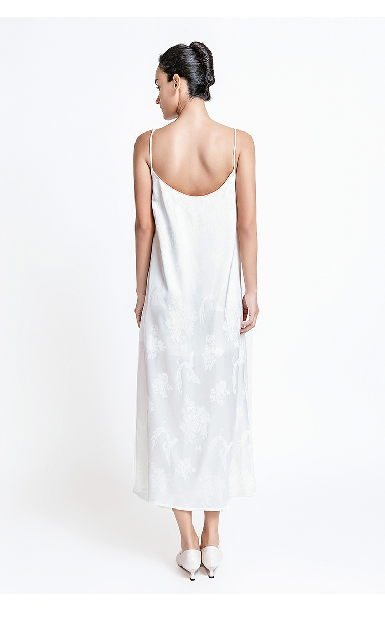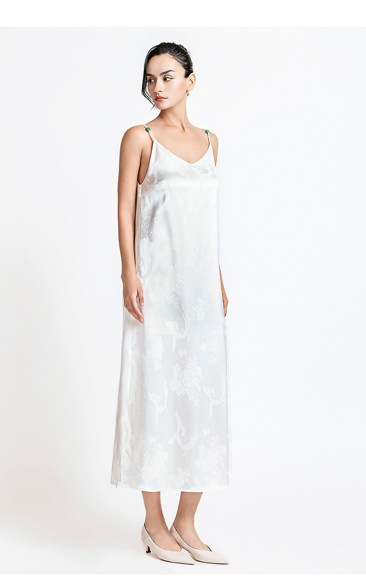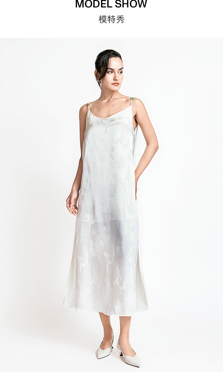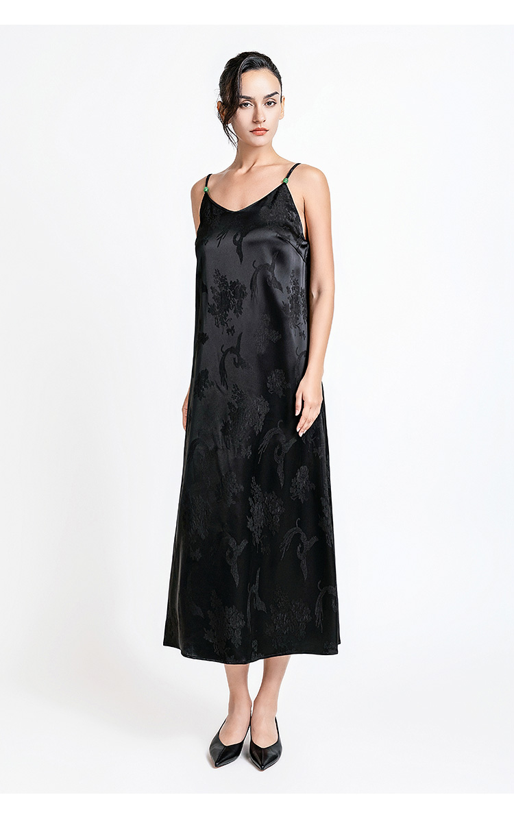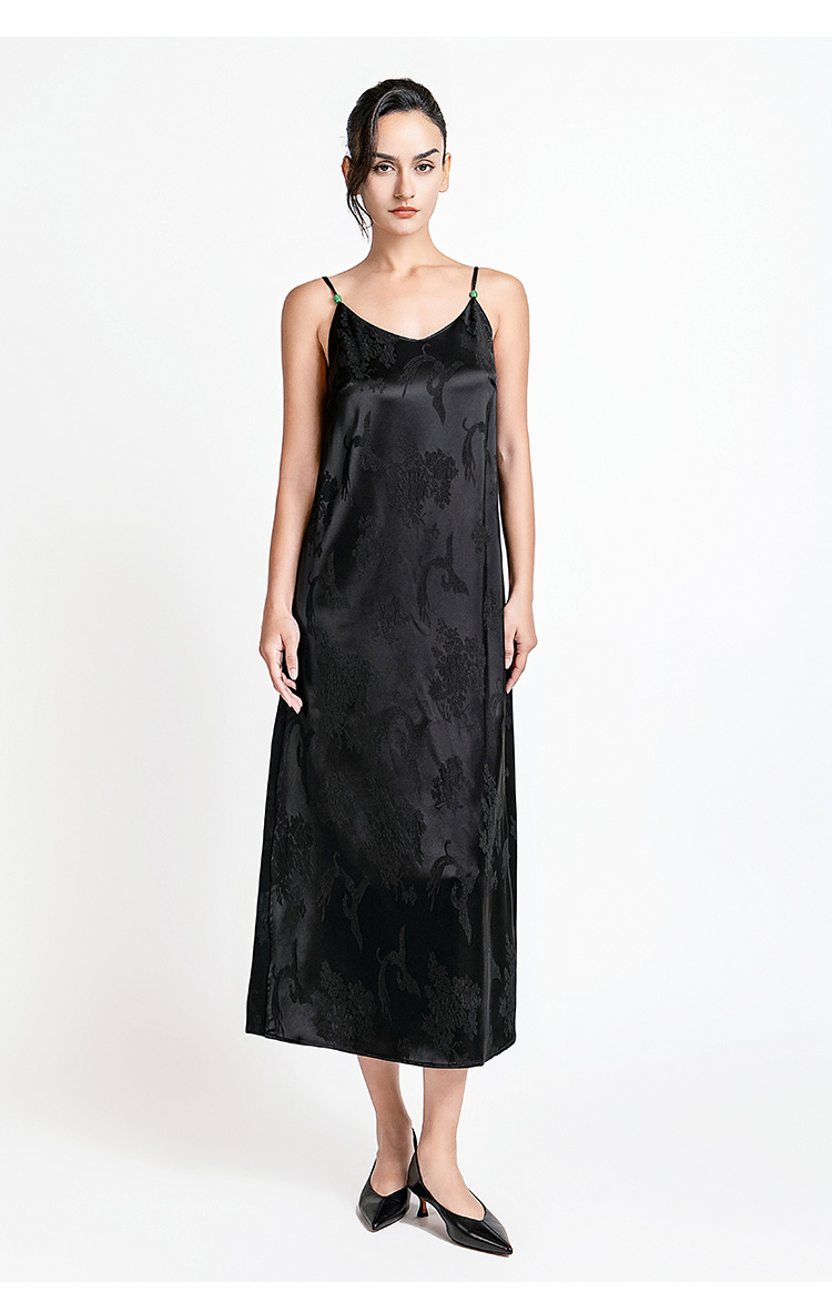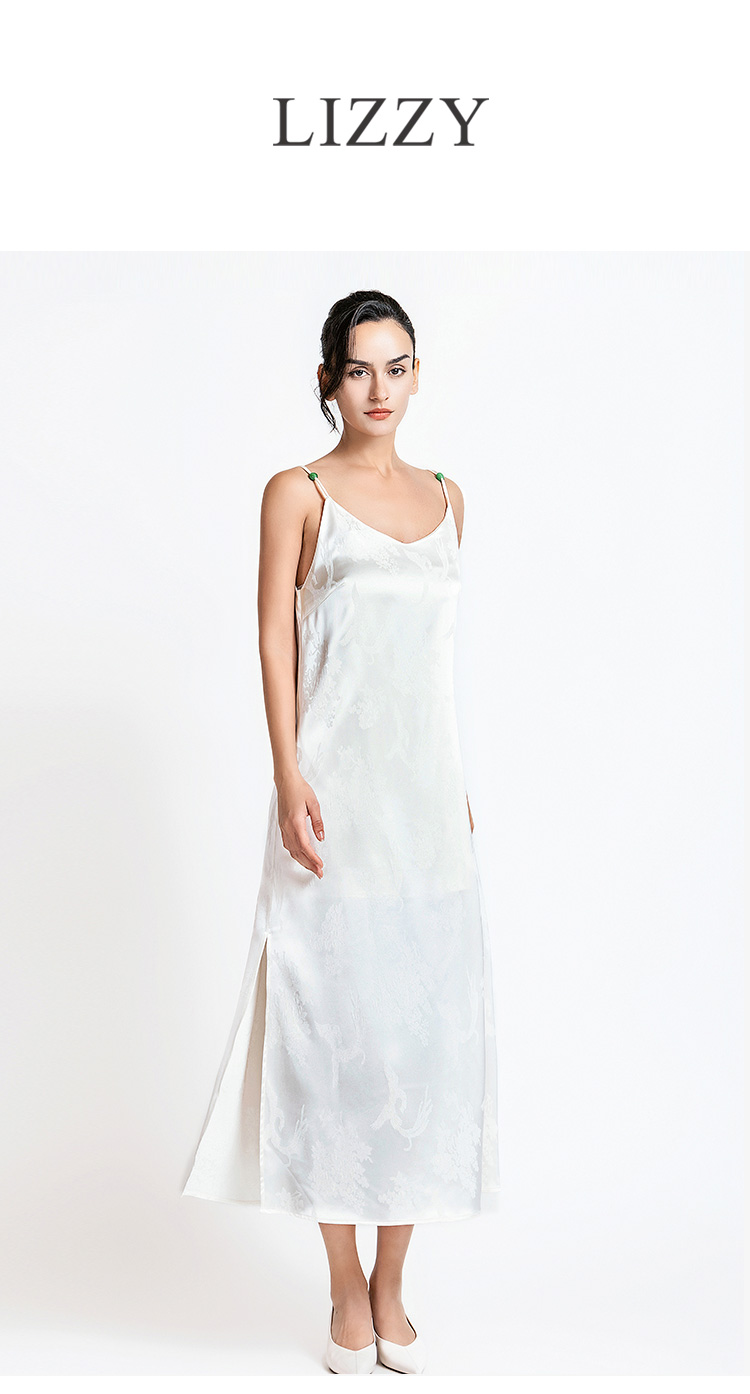 LIZZY2024国风新中式U领廓版型优雅提花缎玉石珠吊带连衣裙7942