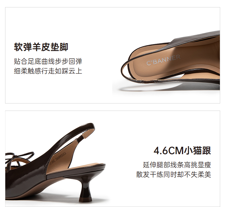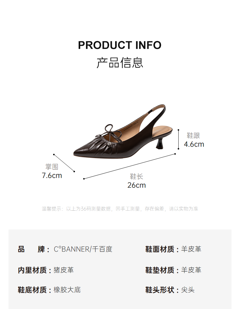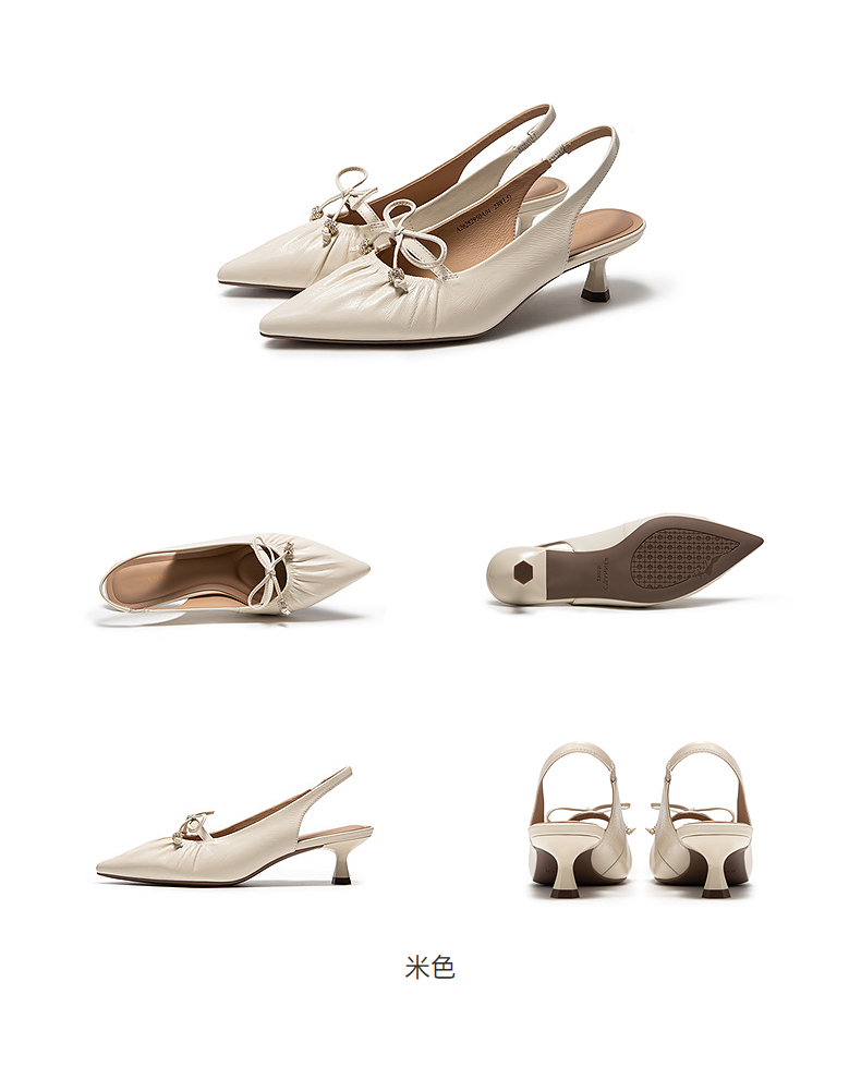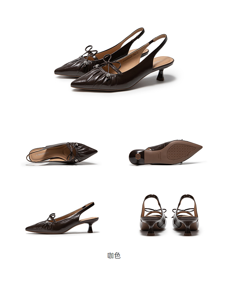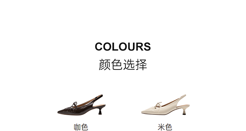 千百度褶皱细高跟羊皮法式时装半凉鞋女2026夏季新款小猫跟凉鞋A26282950