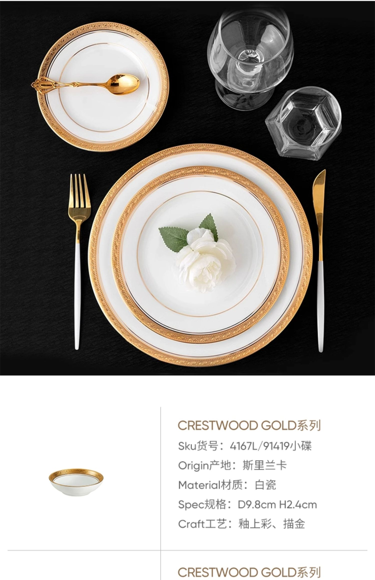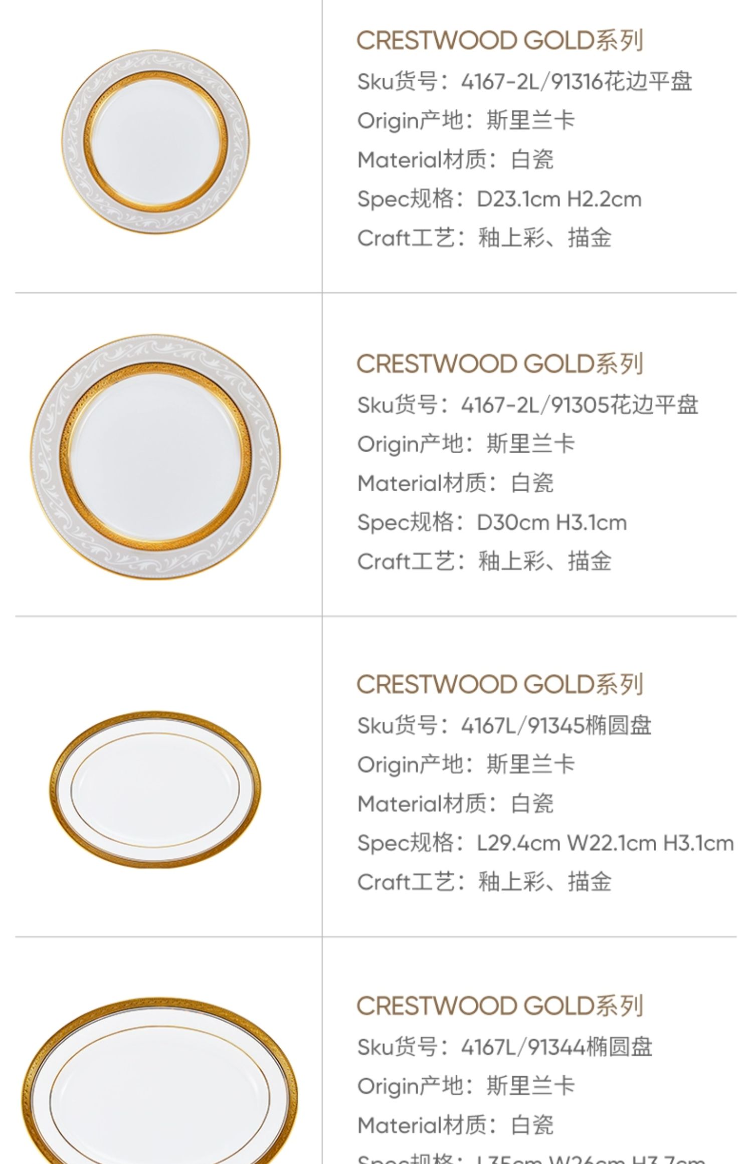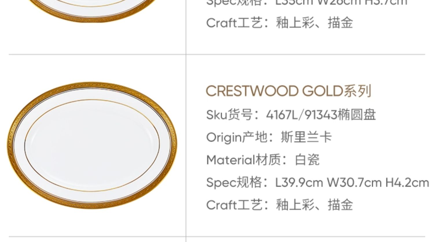 Noritake则武 CRESTWOOD中餐餐具西餐餐盘冷菜盘会所酒店高档套装鱼盘35cm
