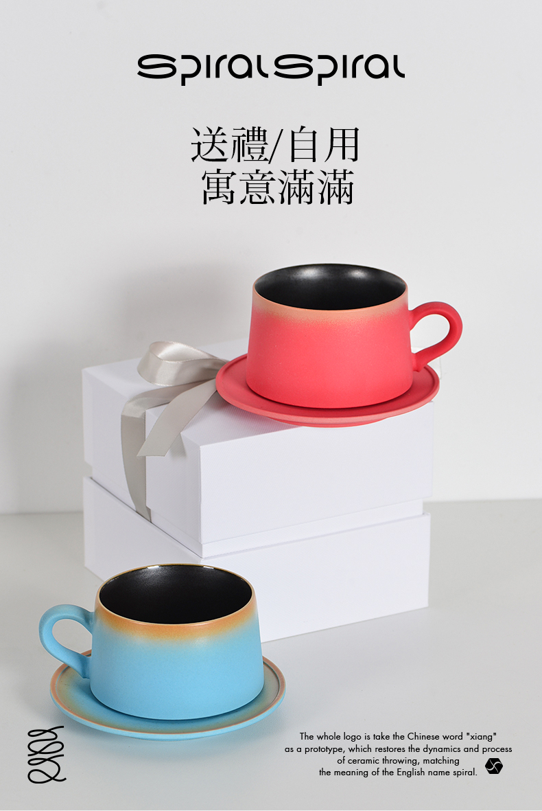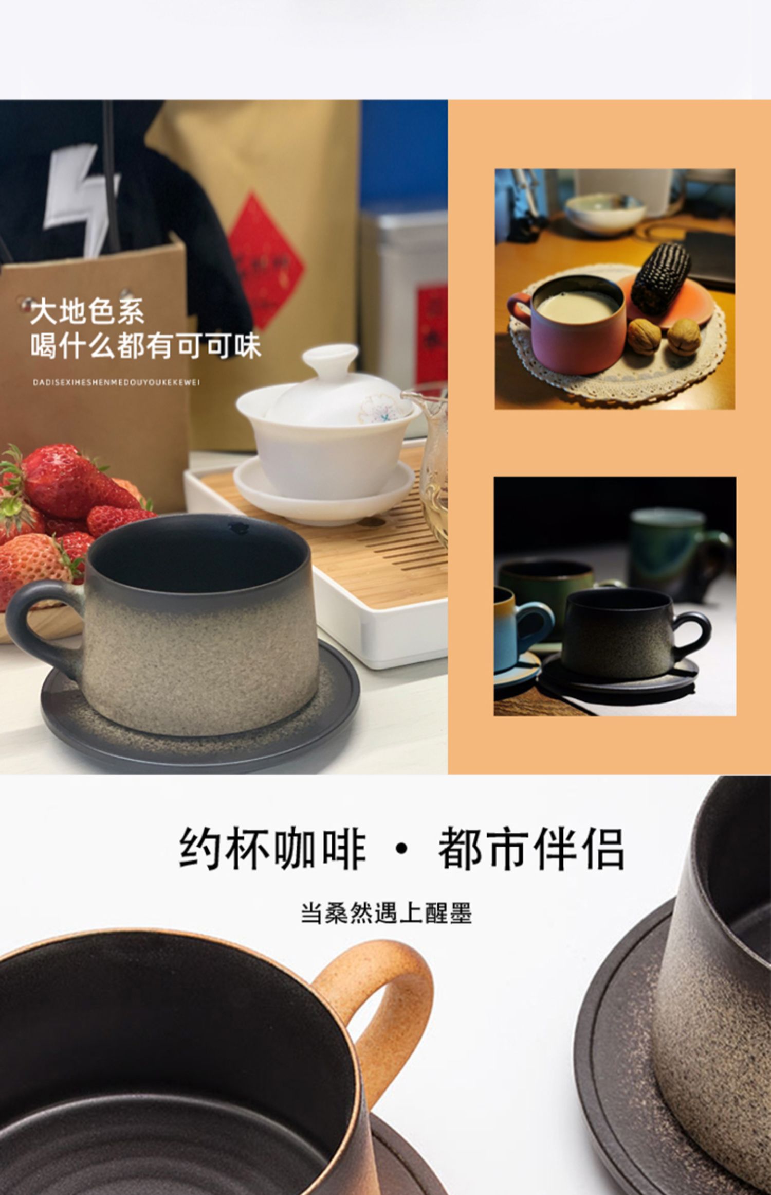 象上情侣咖啡杯高档小精致手工陶瓷杯子办公室拿铁杯咖啡杯碟套装