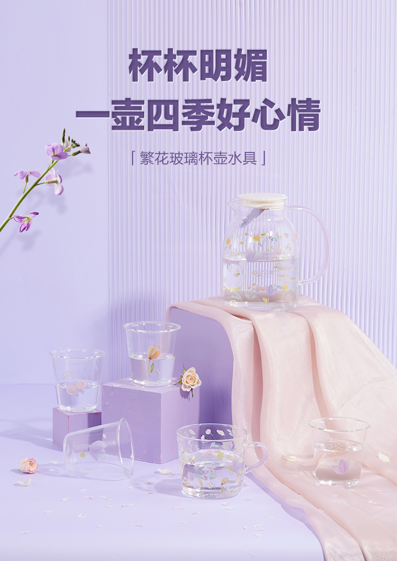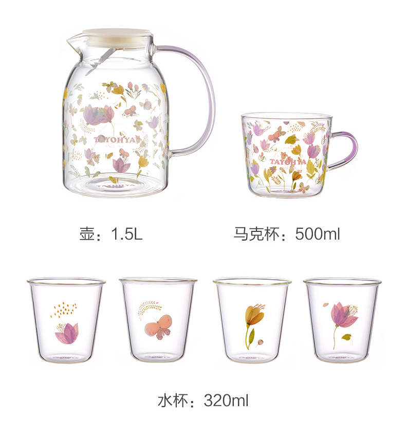 【专柜多样屋】-繁花玻璃一壶四杯水具组