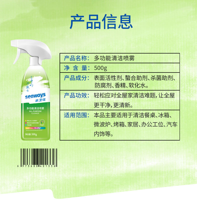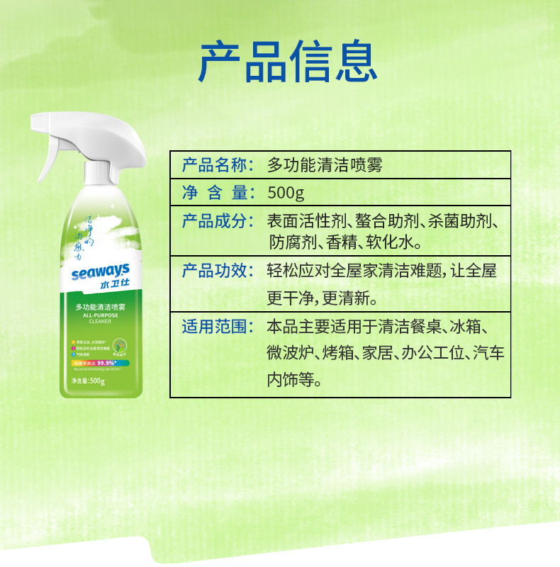 【清积水】水卫仕家居多功能清洁喷雾500g(SGJW)