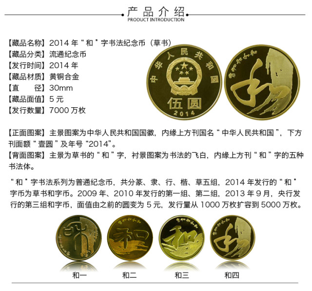 2014“和”字书法纪念币第四组