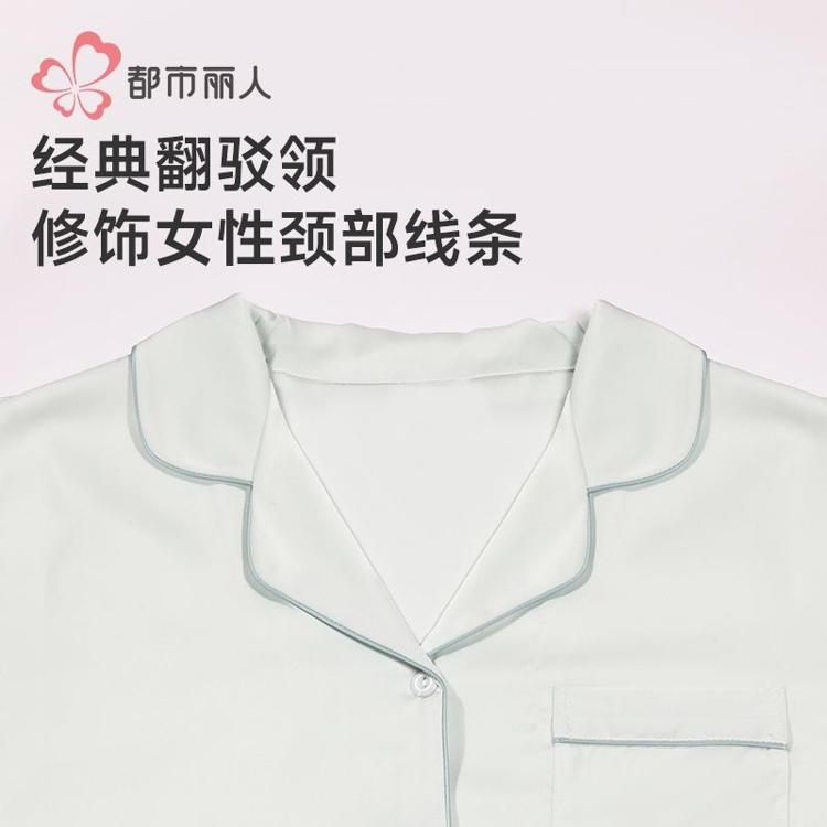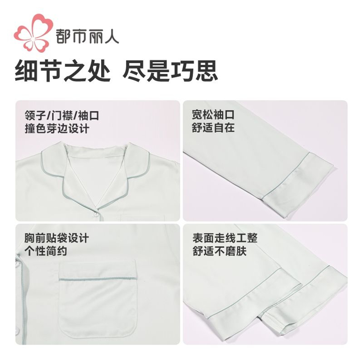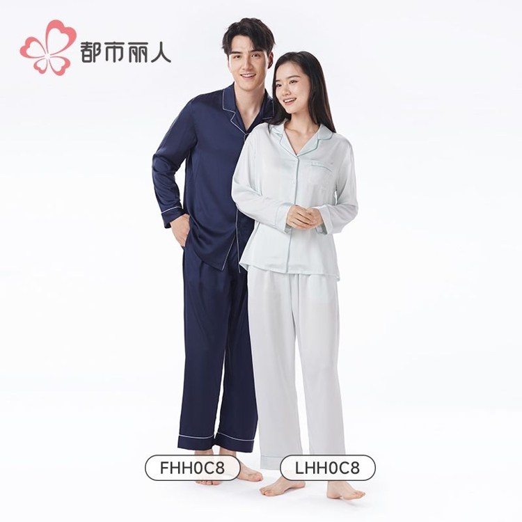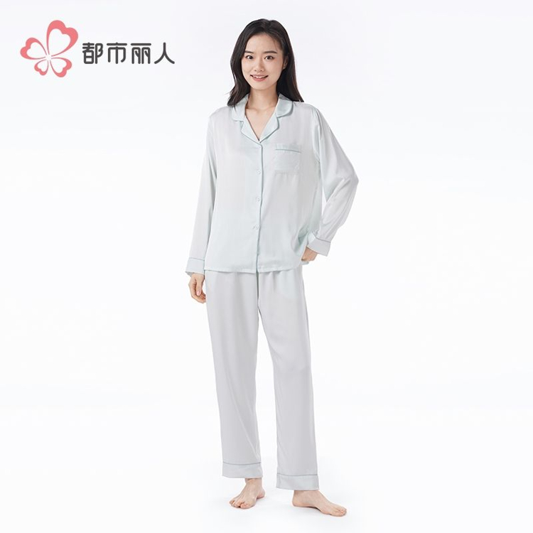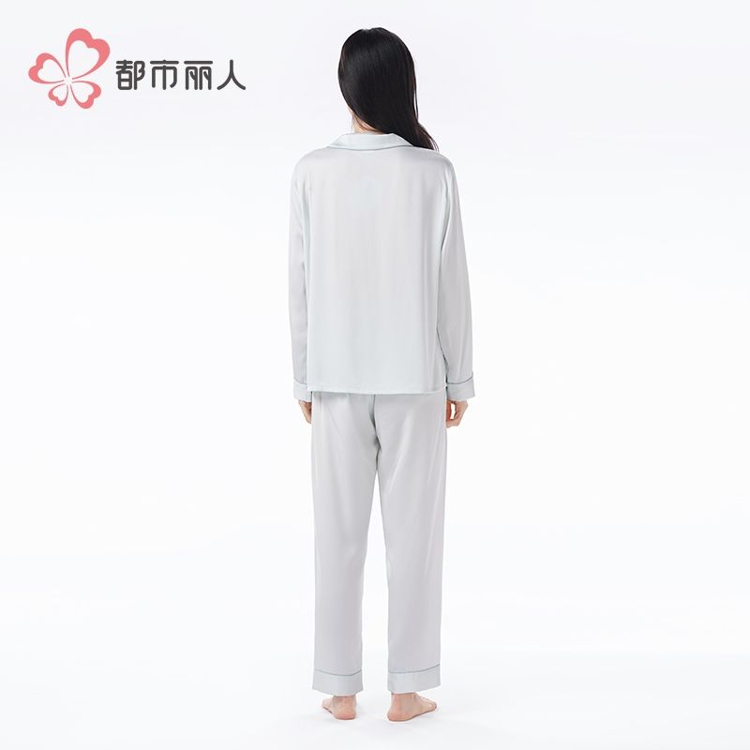 都市丽人女士睡衣女装冰雪丝睡衣女士家居服长袖长裤丝质套装LHH0C8