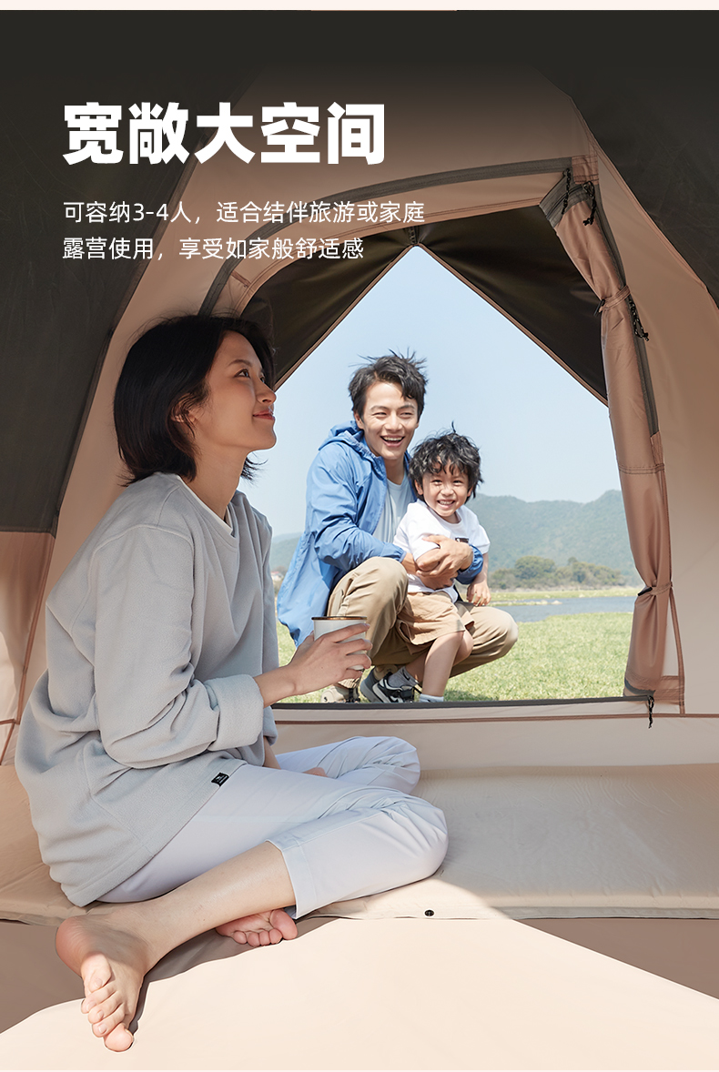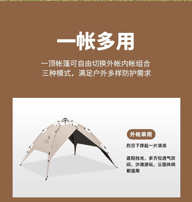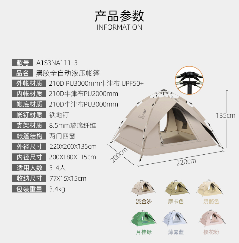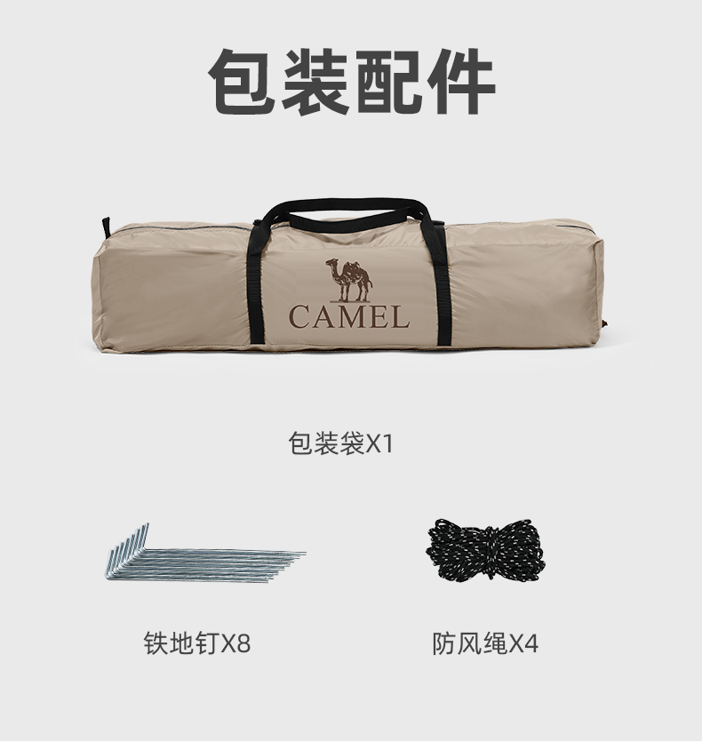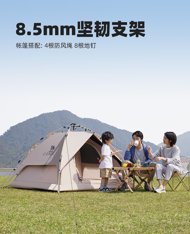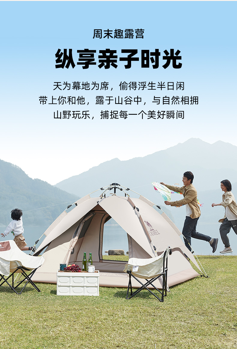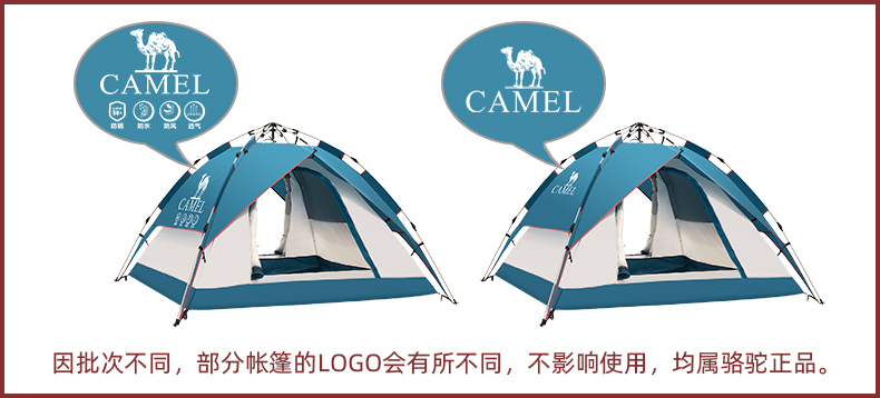 骆驼帐篷户外折叠便携式黑胶自动3-4人防雨加厚野外露营野营速开 A1S3NA111-3