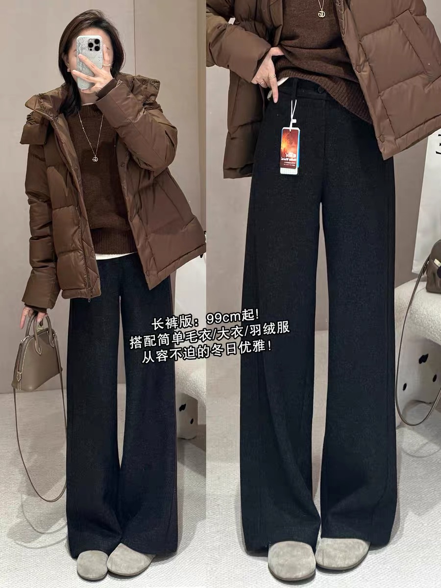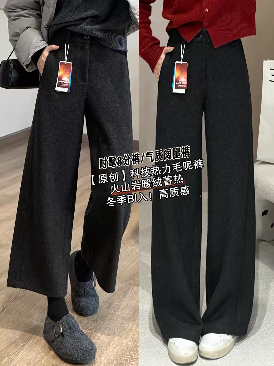 💰109元包邮 科技热力火山岩暖绒~冬季新款气质时髦八分裤+阔腿长裤 两种裤长,满足所有人的需求 超级好火山岩暖绒面料 上身即暖