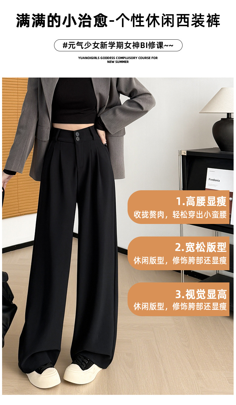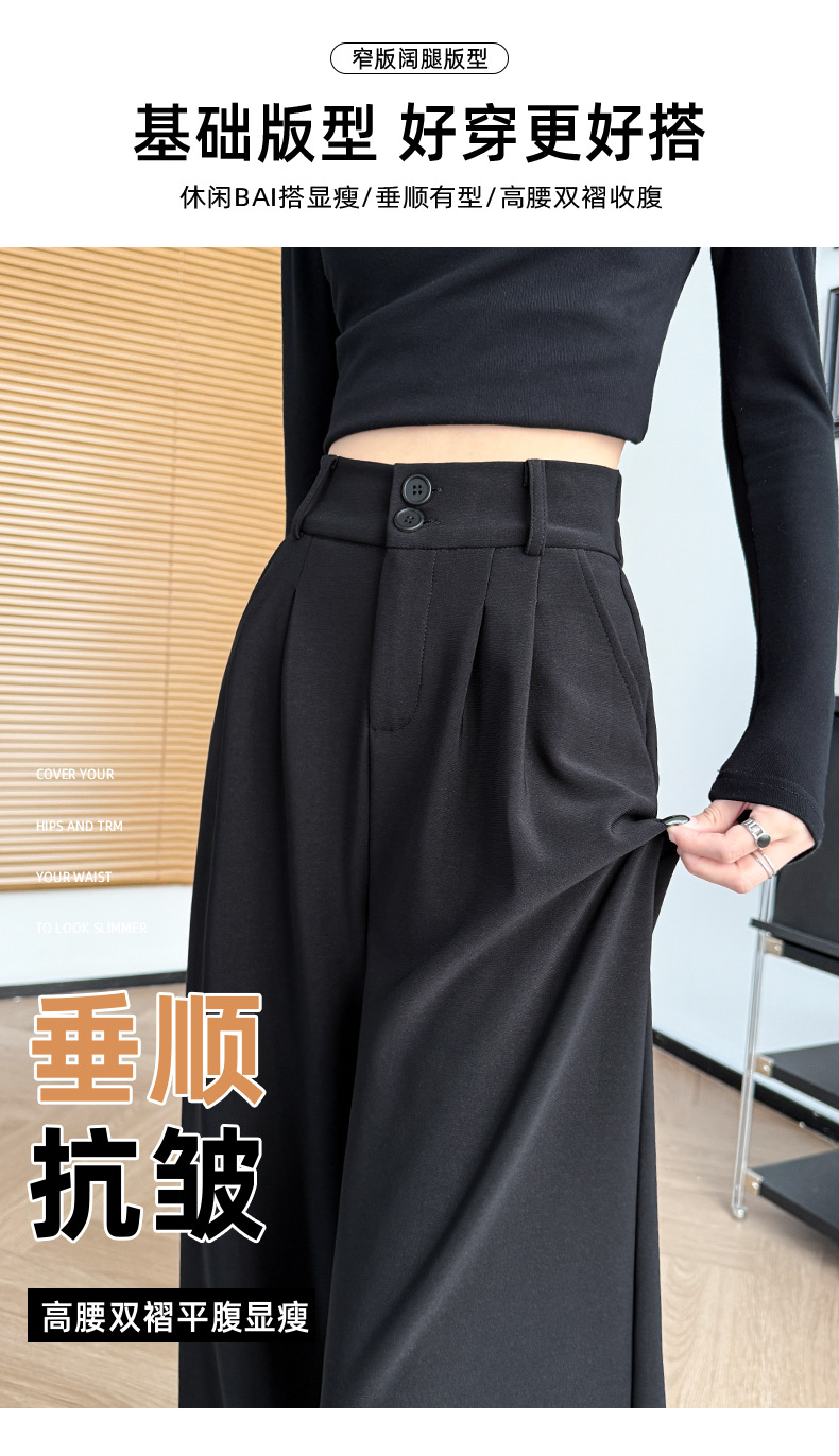 黑色西装裤女2025新款秋季高级感垂感显瘦休闲裤子高腰直筒阔腿裤