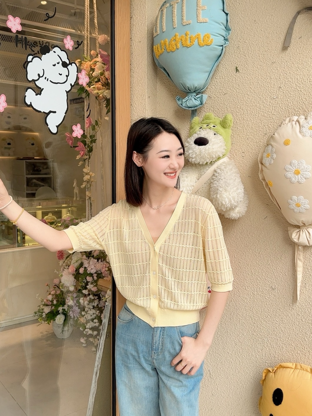 火桐hooton 普罗旺斯的夏天 莱赛尔桑蚕丝V领短袖开衫G467
