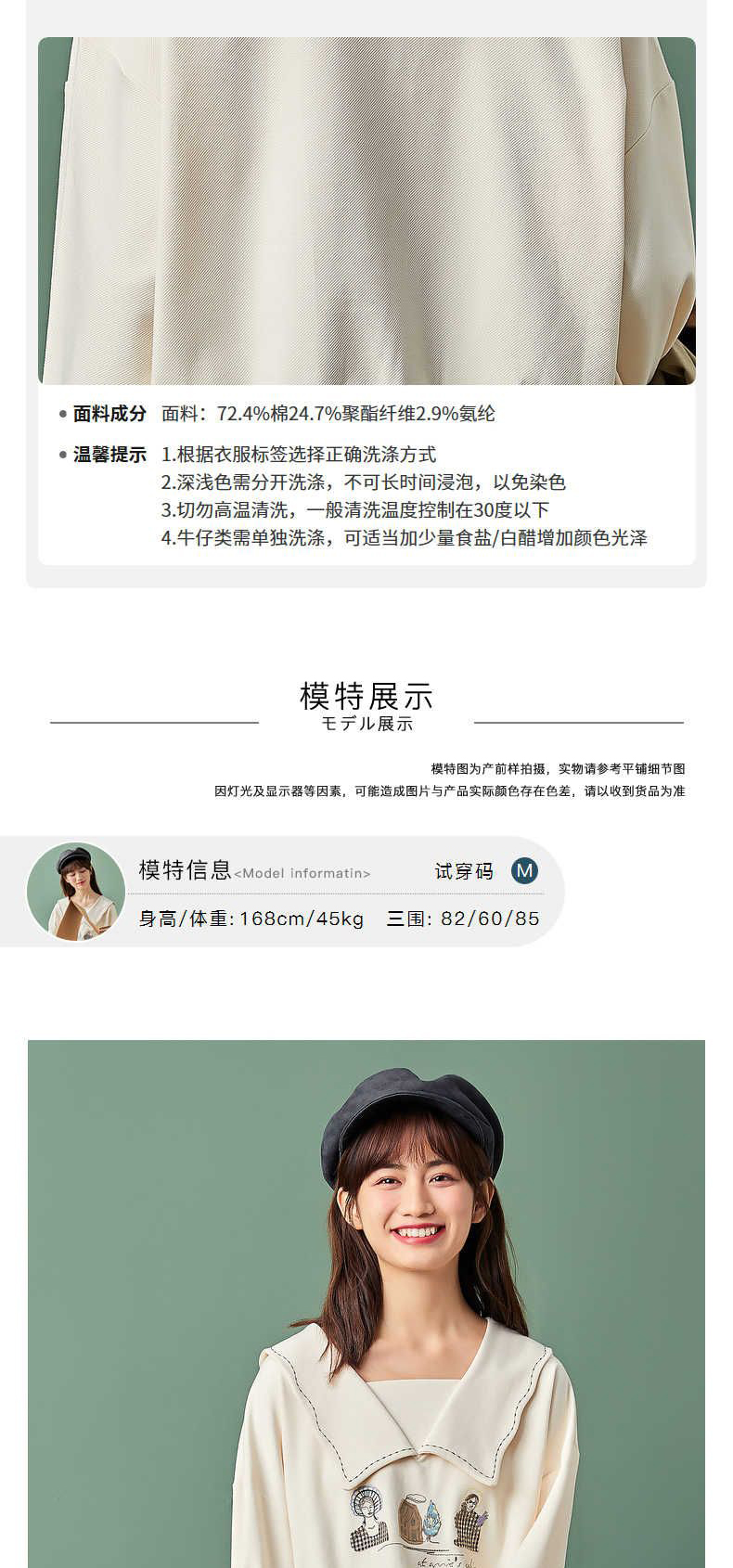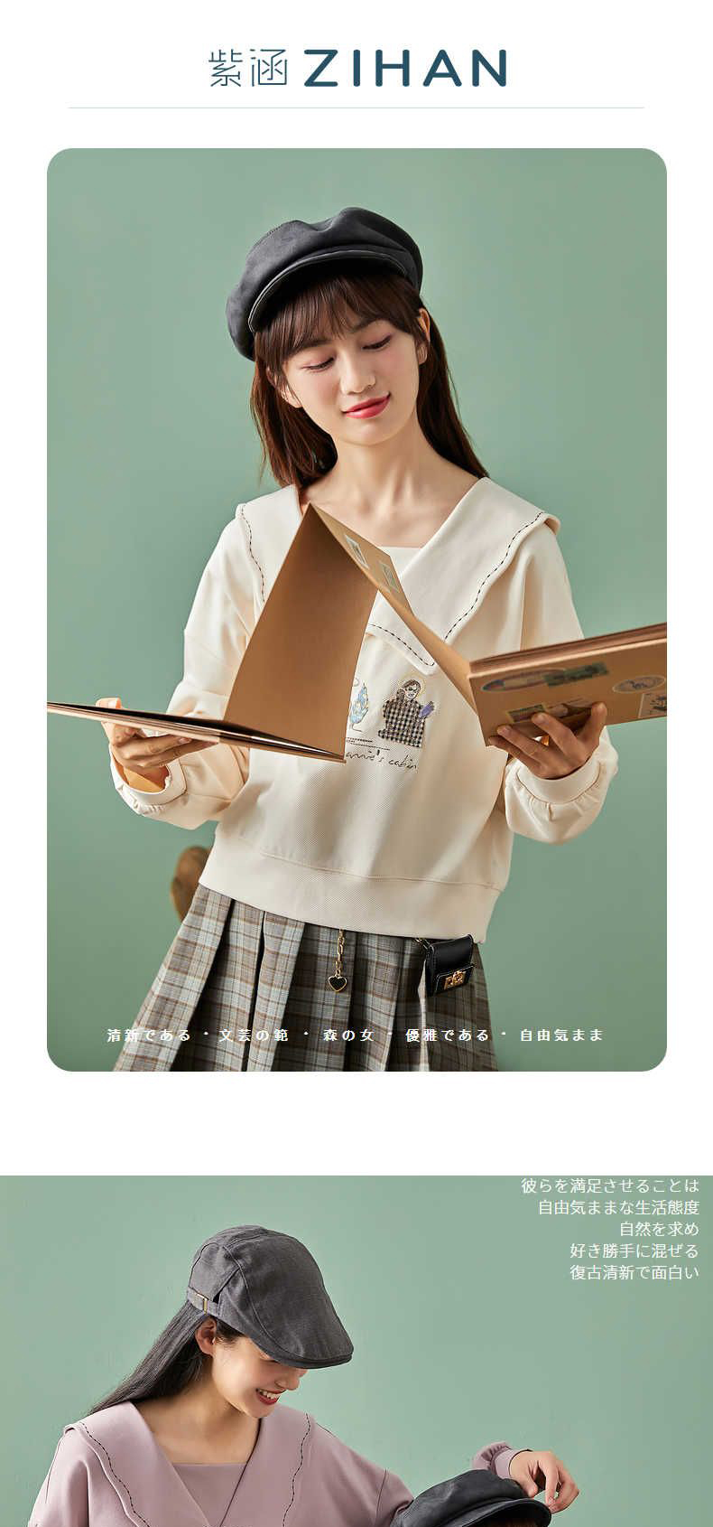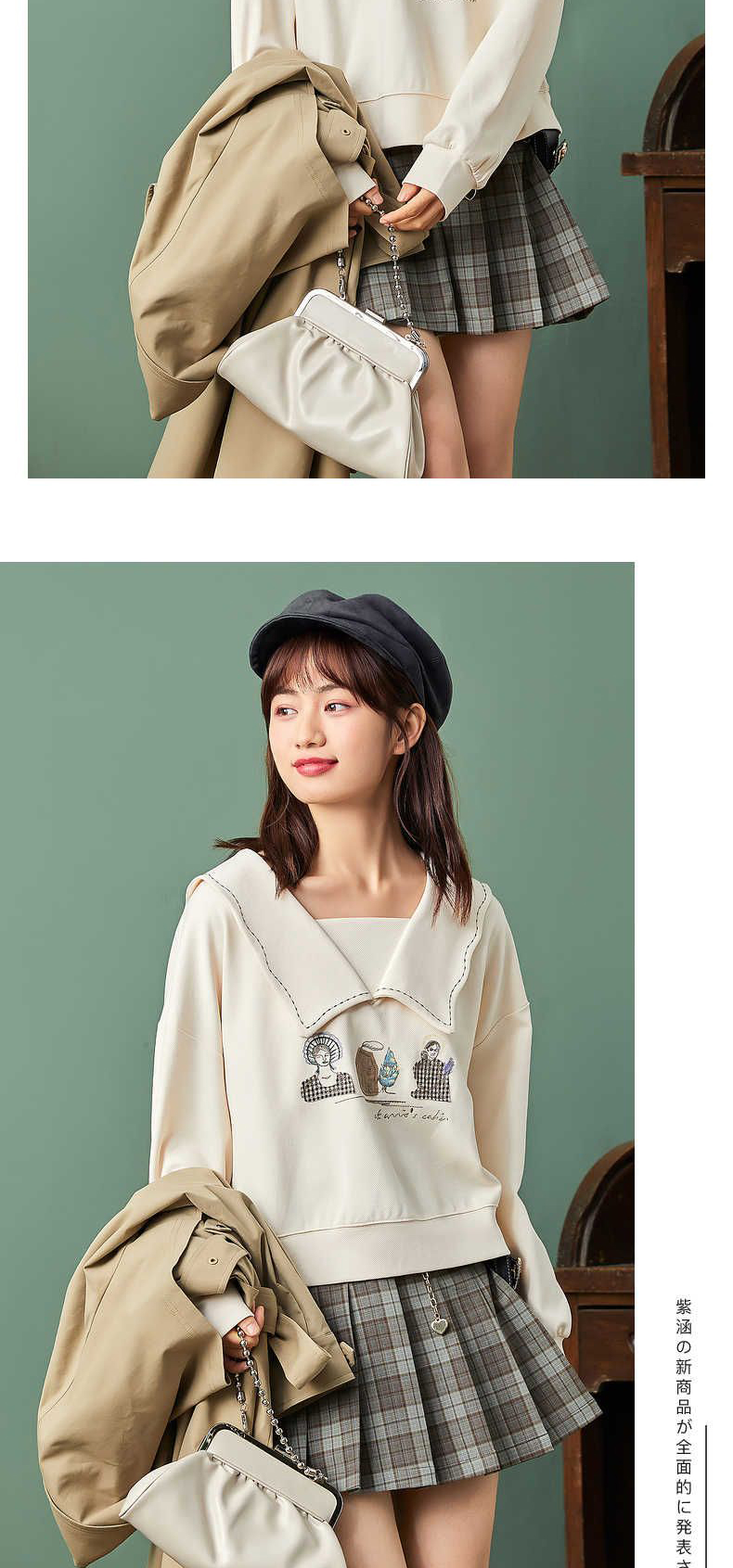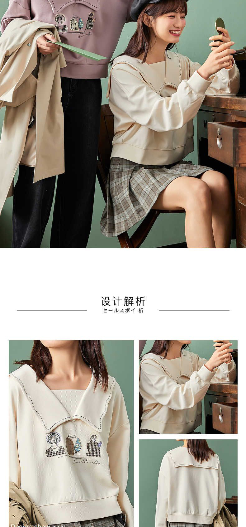 ZIHAN紫涵学院风翻领卫衣女2022春季存新款甜美波浪领贴布刺绣长袖上衣Z2Z01AS131