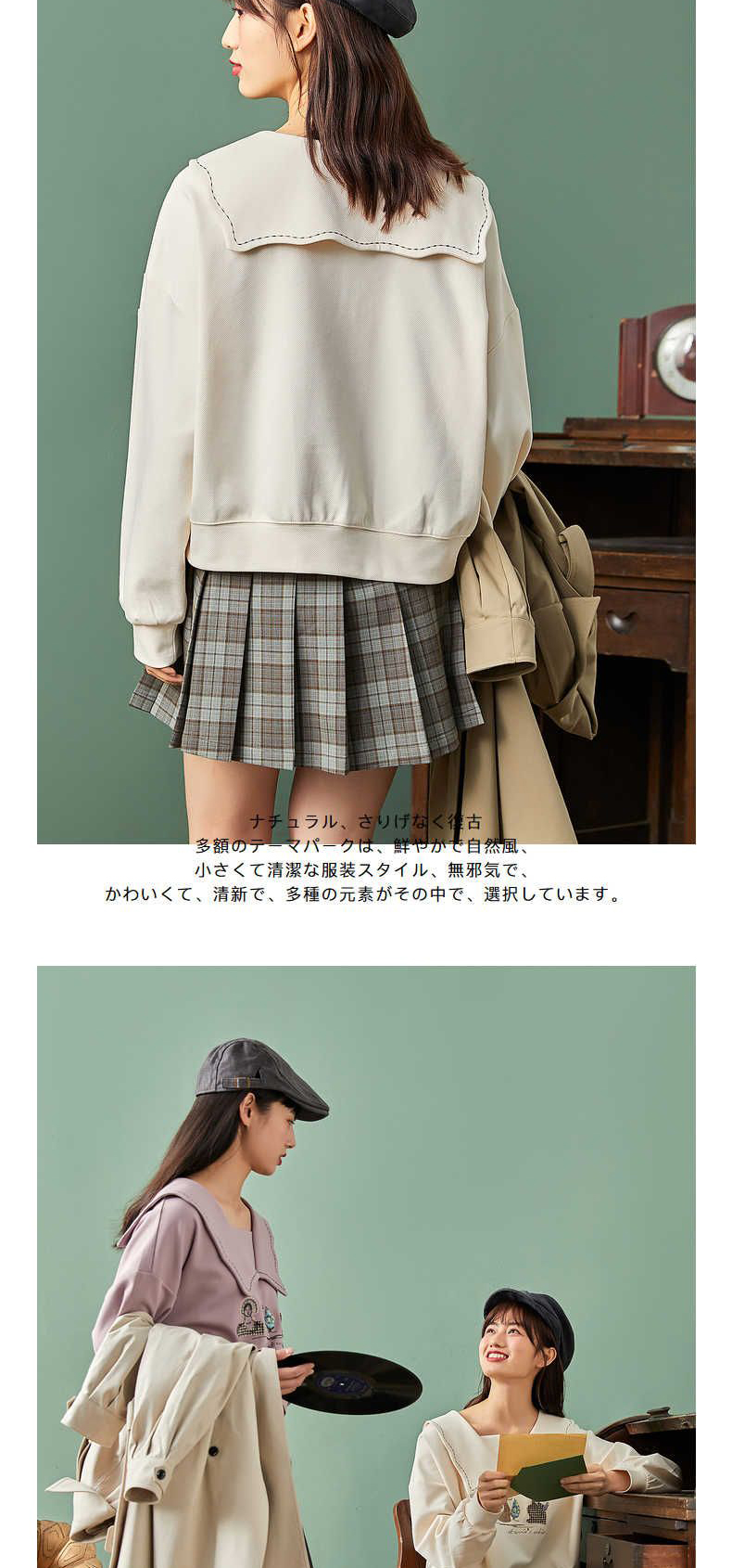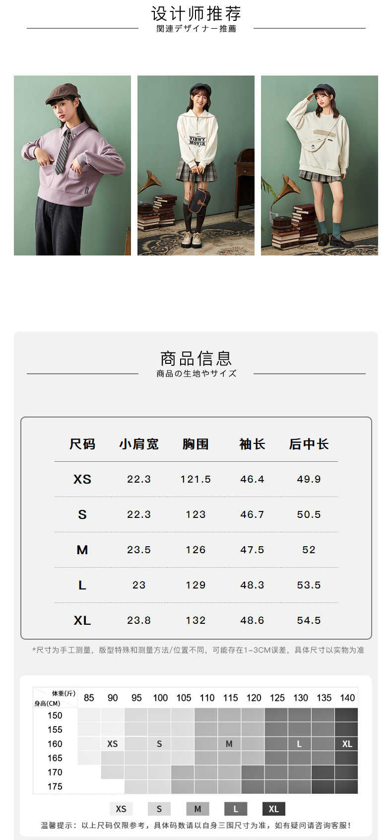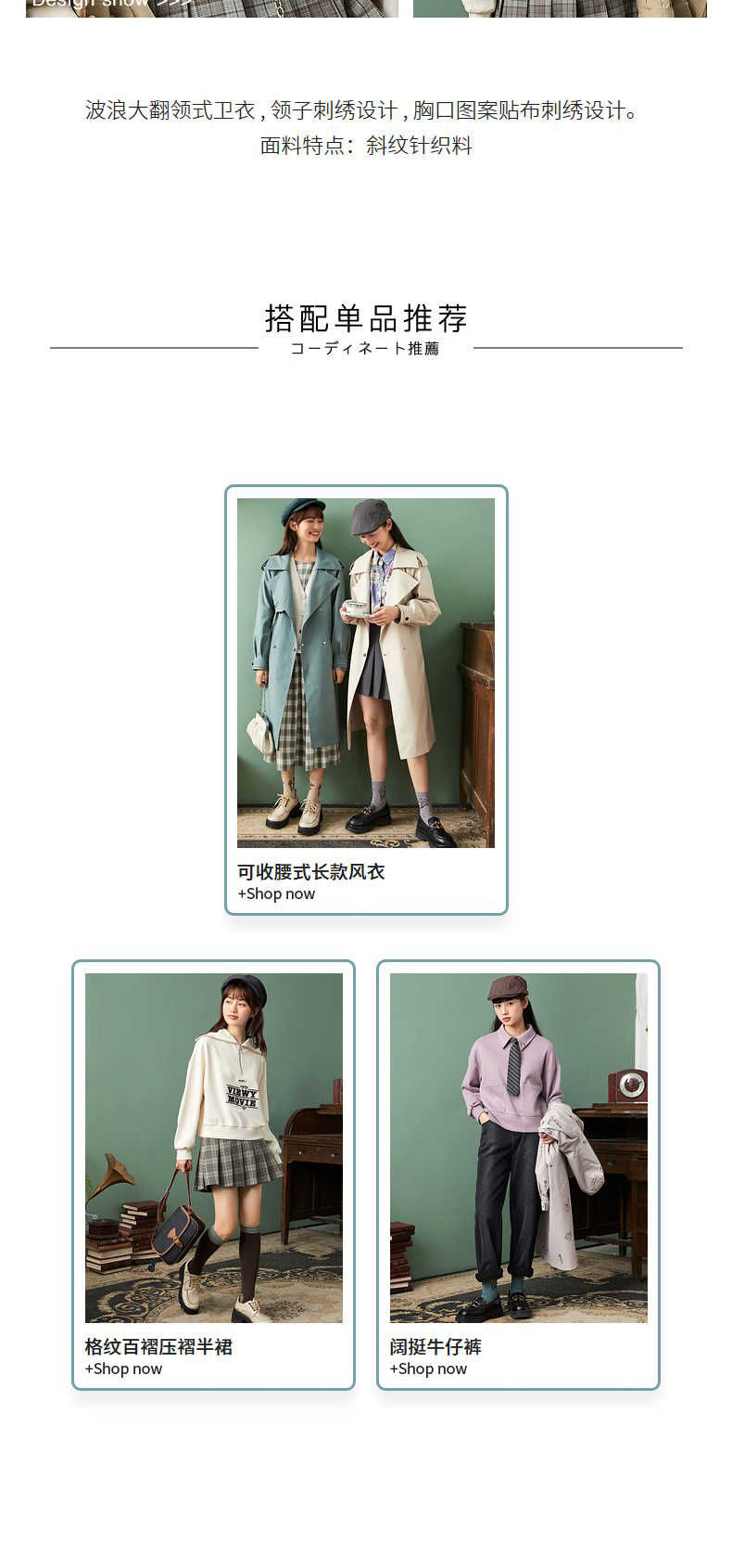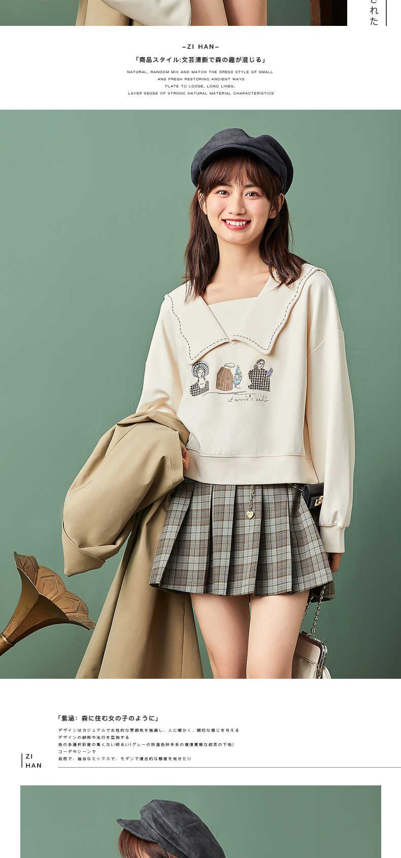 ZIHAN紫涵学院风翻领卫衣女2022春季存新款甜美波浪领贴布刺绣长袖上衣Z2Z01AS131