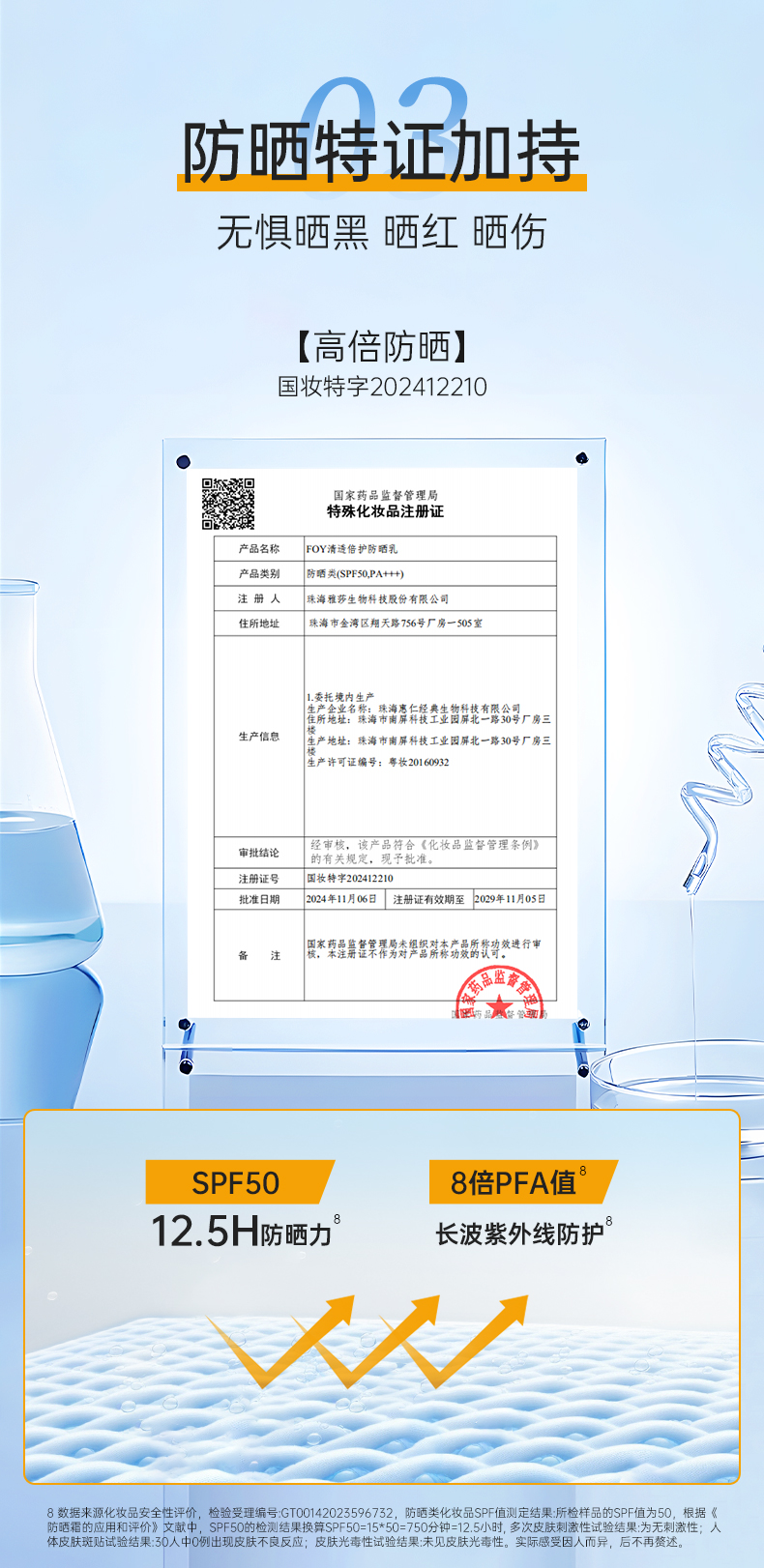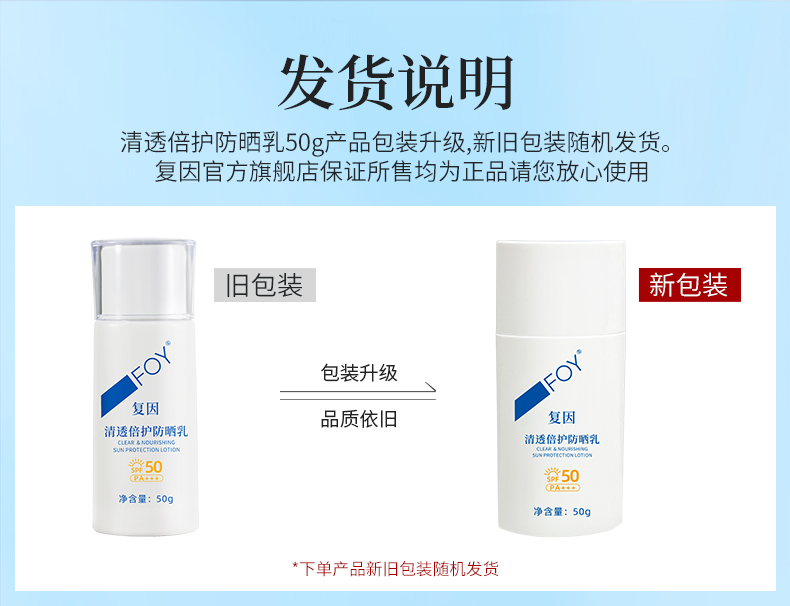 【买3送1】复因FOY清透倍护防晒乳50g SPF50+ 敏感肌防晒黑晒伤**2件9折、3件8折