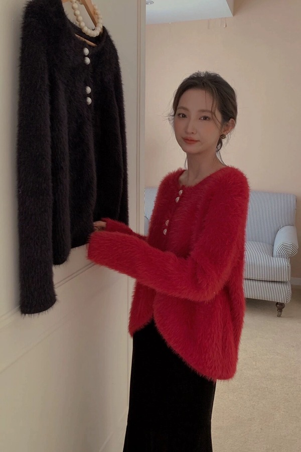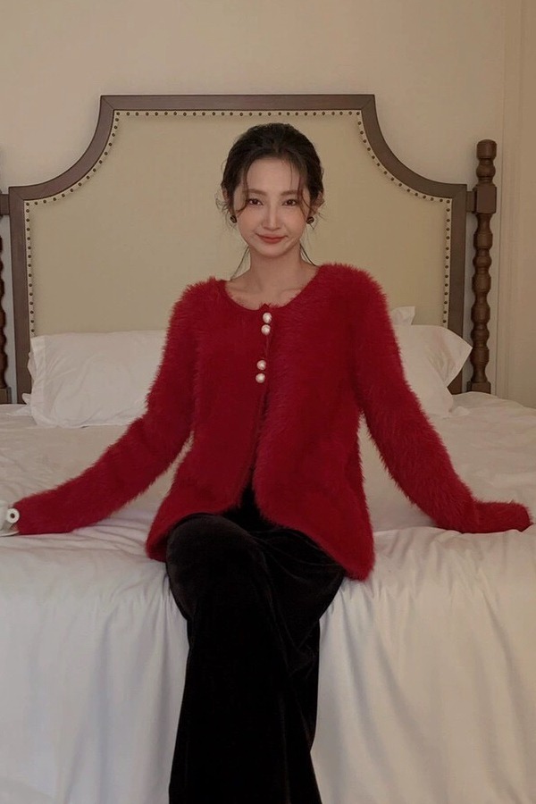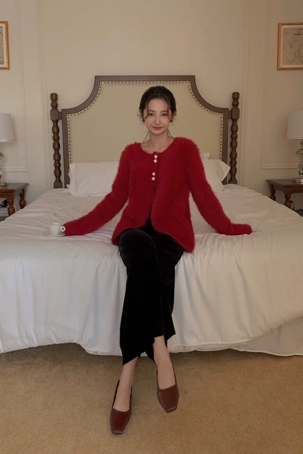 Le Malene 优雅红色百搭针织开衫外套 19489