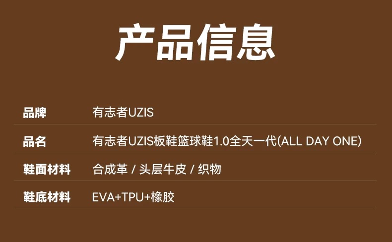 有志者UZIS板鞋篮球鞋1.0全天一代(ALL DAY ONE)