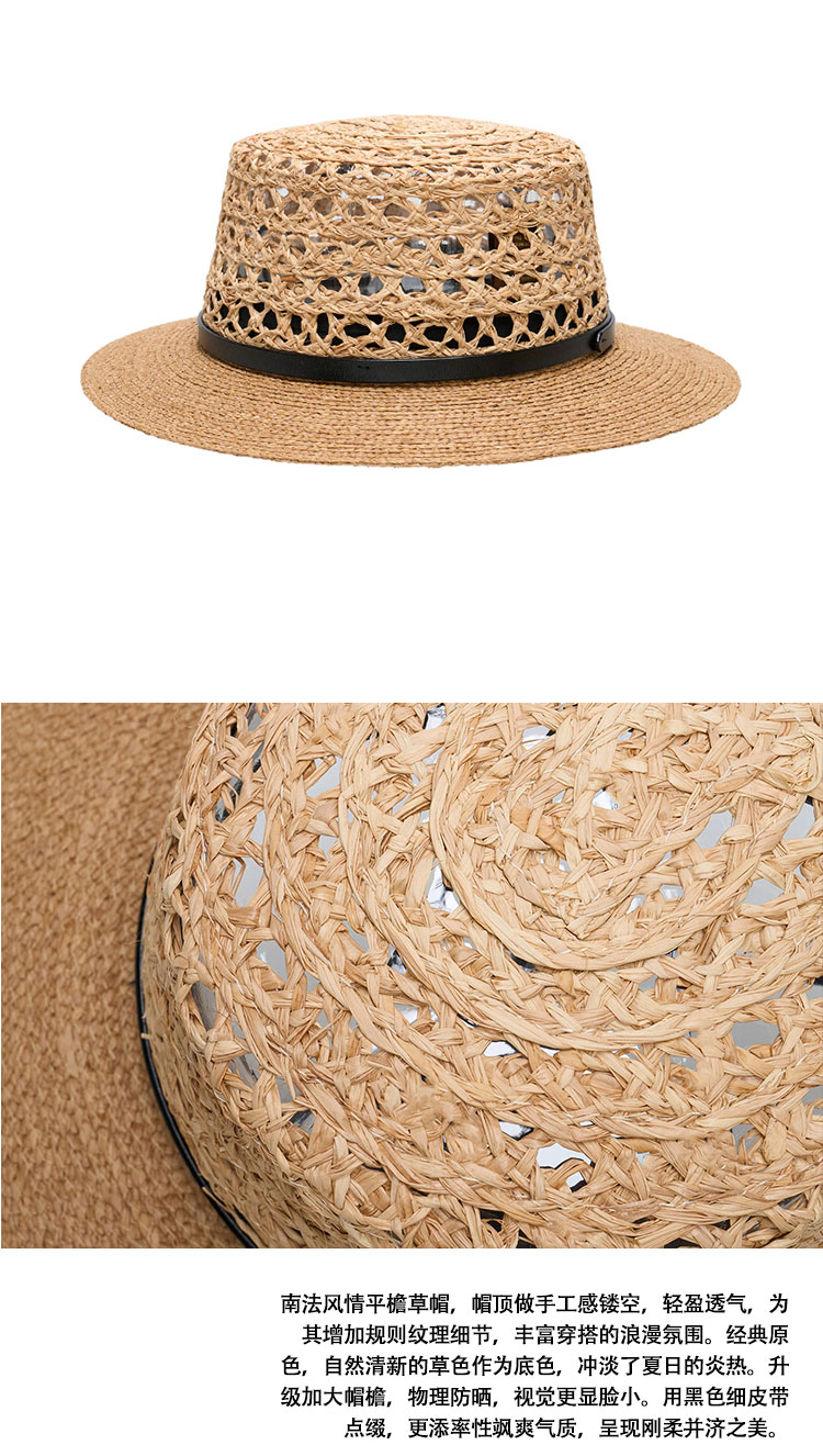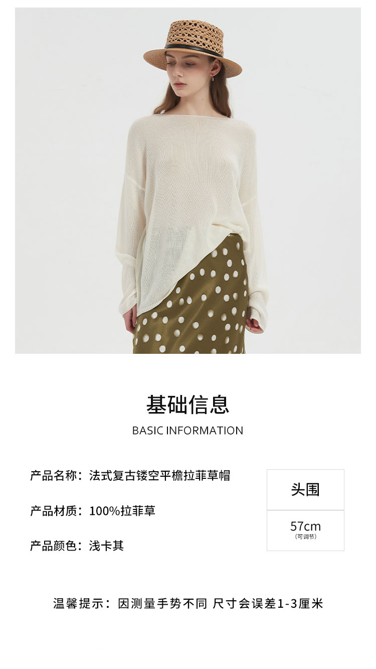 【2件9折】【Petit Bari】法式复古镂空平檐拉菲草帽