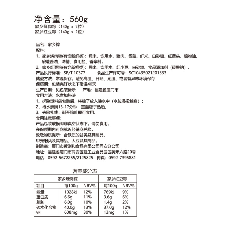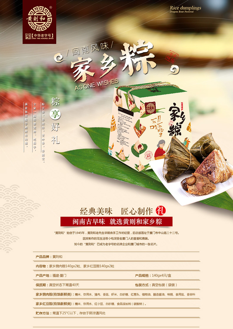 中华老字号黄则和端午粽子礼盒【家乡粽】 家乡烧肉粽2粒 家乡红豆粽2粒 中华老字号 地道老味道